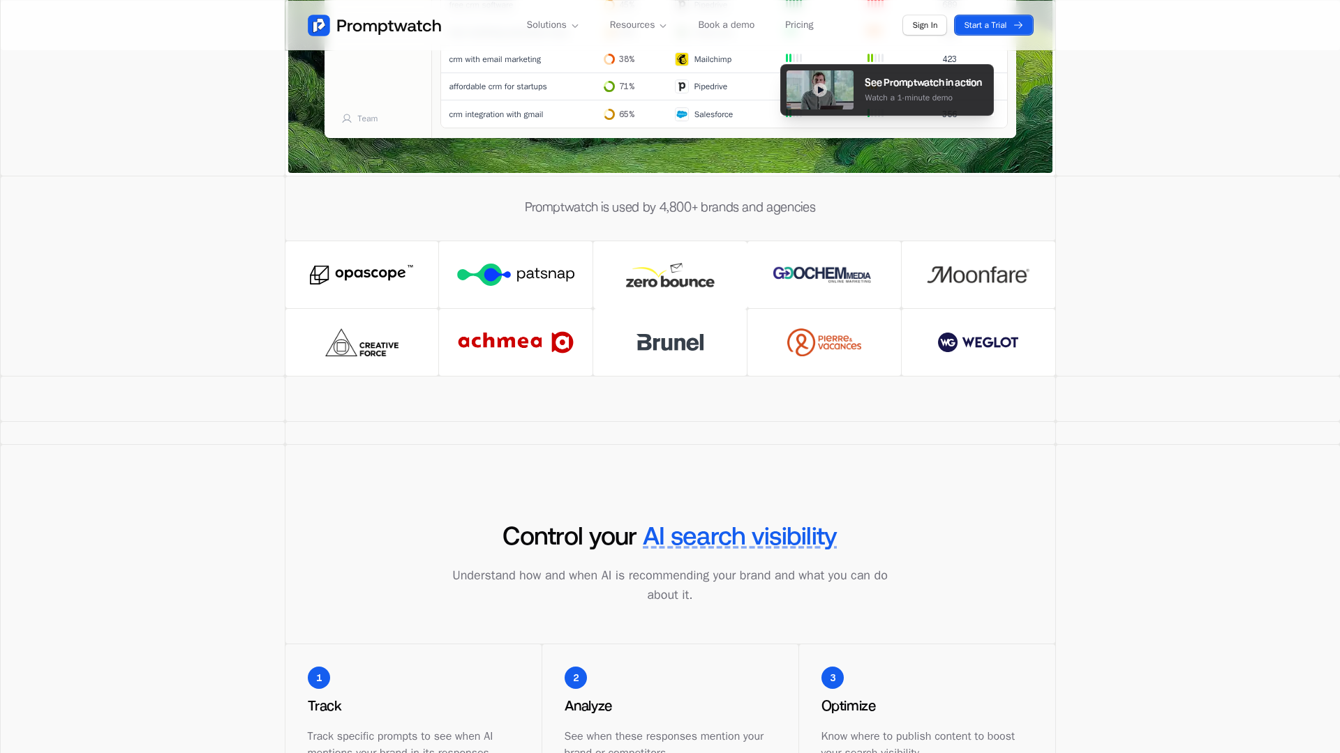 Tracks high-value prompts, prompt volume, which prompts trigger brand mentions, and identifies content opportunities.
