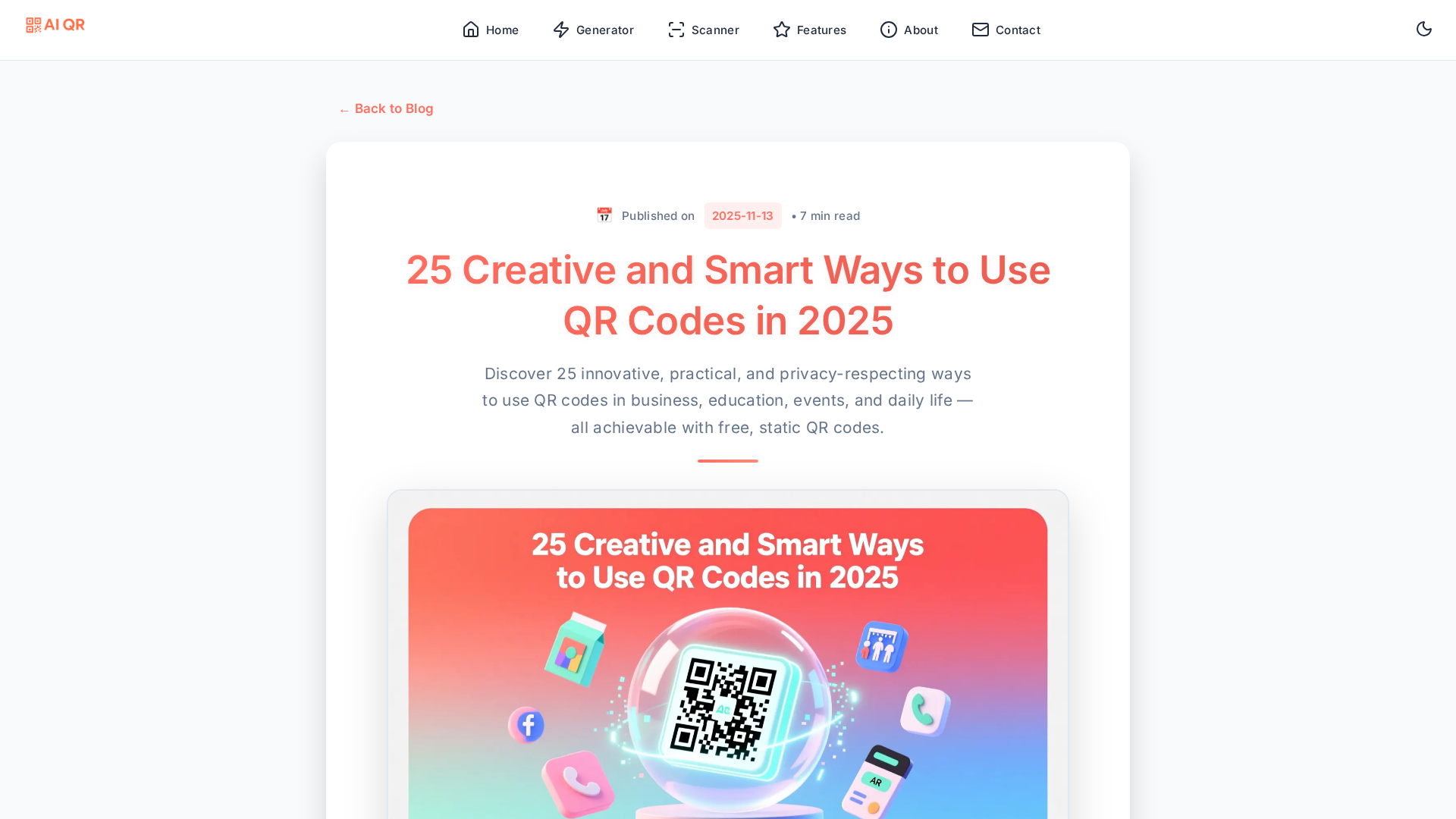 A practical guide to 25 static QR code ideas for 2025, with privacy-friendly tips and AI-powered scannability analysis.