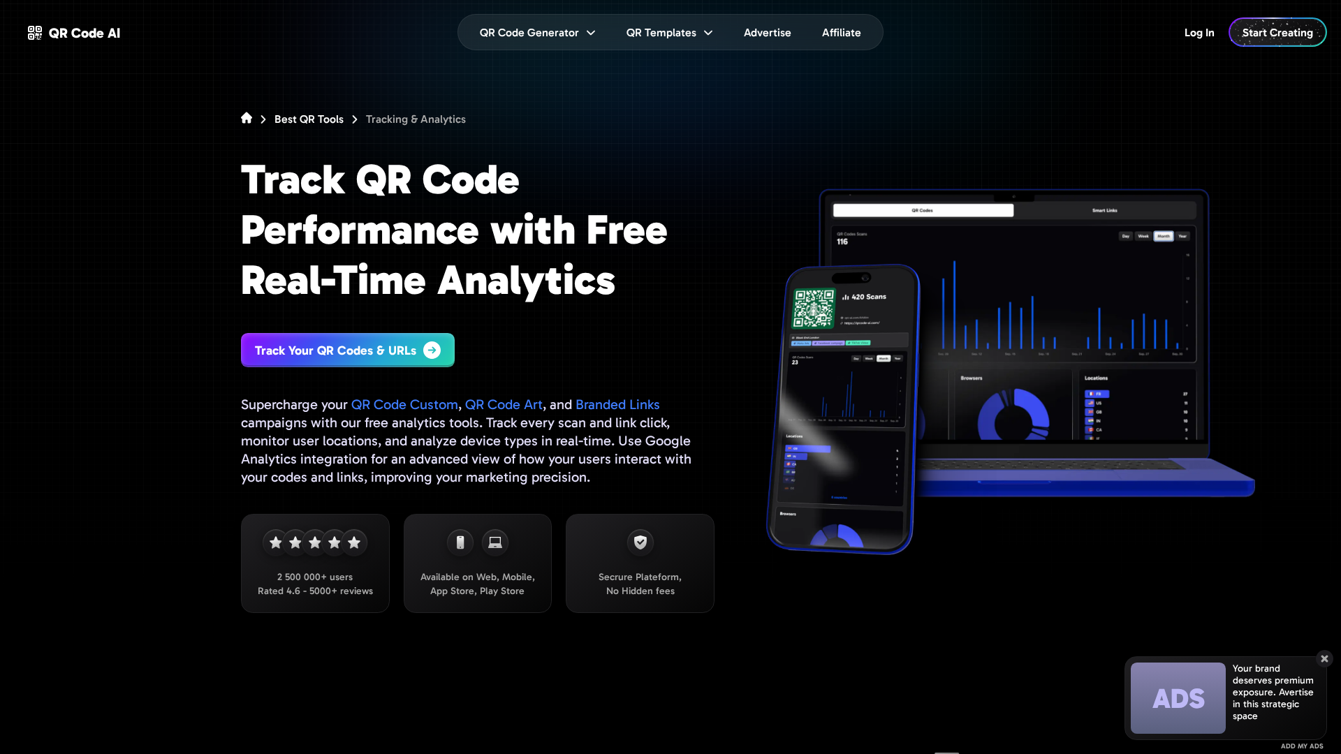 Free real-time QR code tracking with AI-powered analytics and branded links.