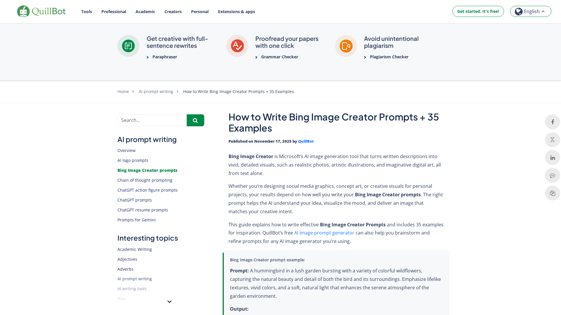 A practical guide to writing Bing Image Creator prompts with 7 tips and 35 ready-to-use examples.
