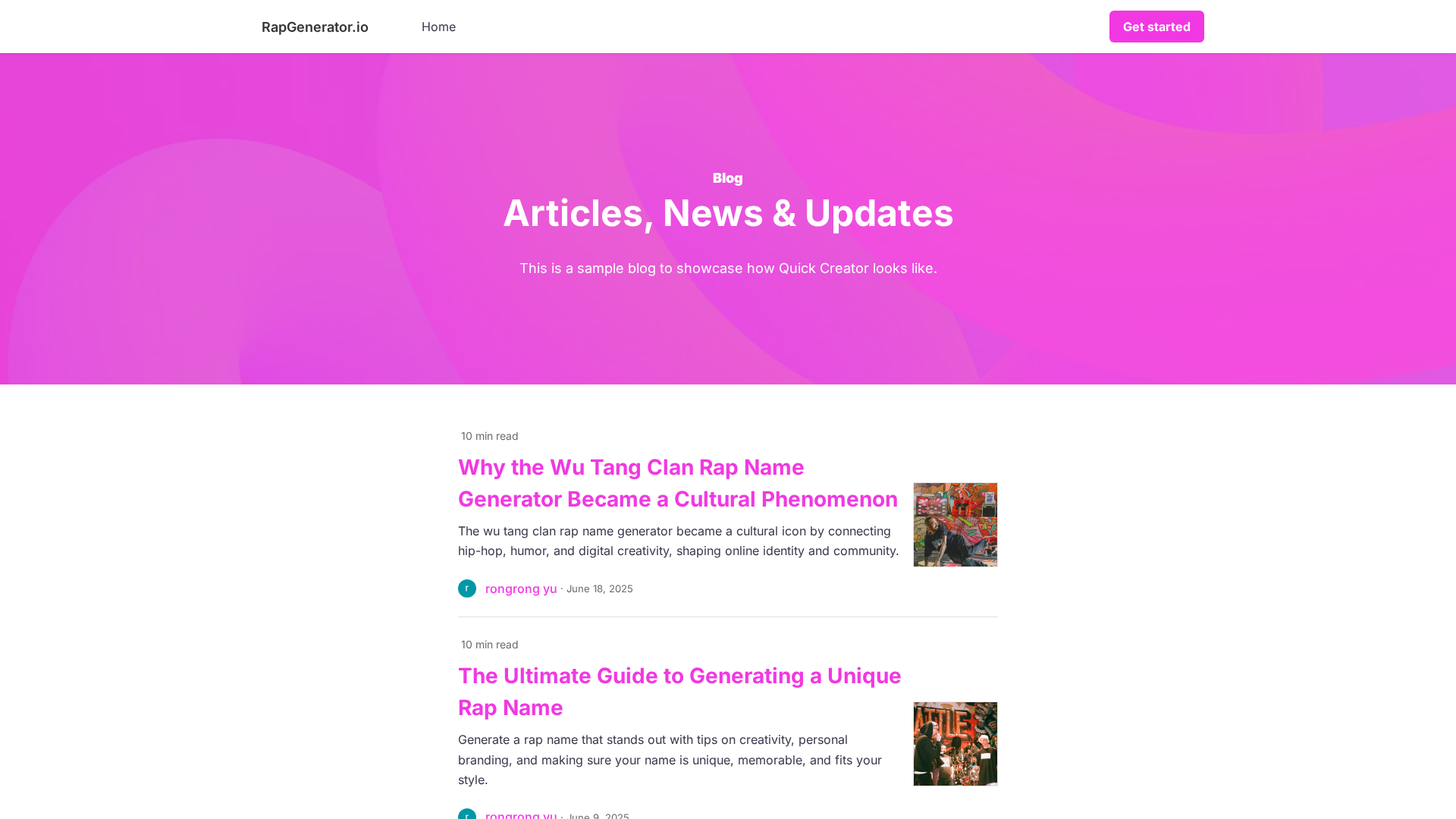A sample blog demo showing how QuickCreator.io powers an AI-driven, free blogging experience.