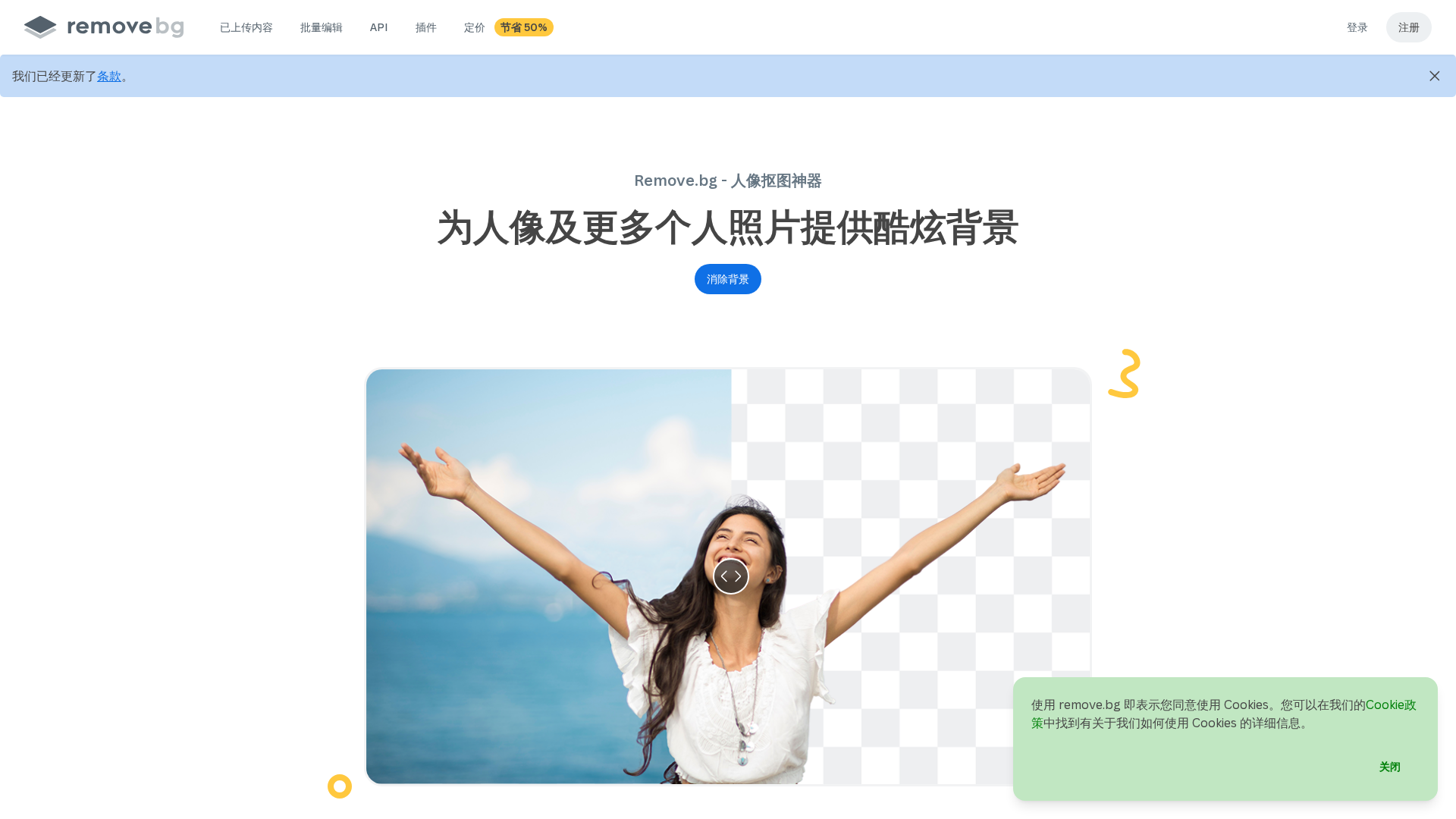 AI 抠图神器 remove.bg:一键去背景、支持批量处理并可通过 API 与插件无缝集成。