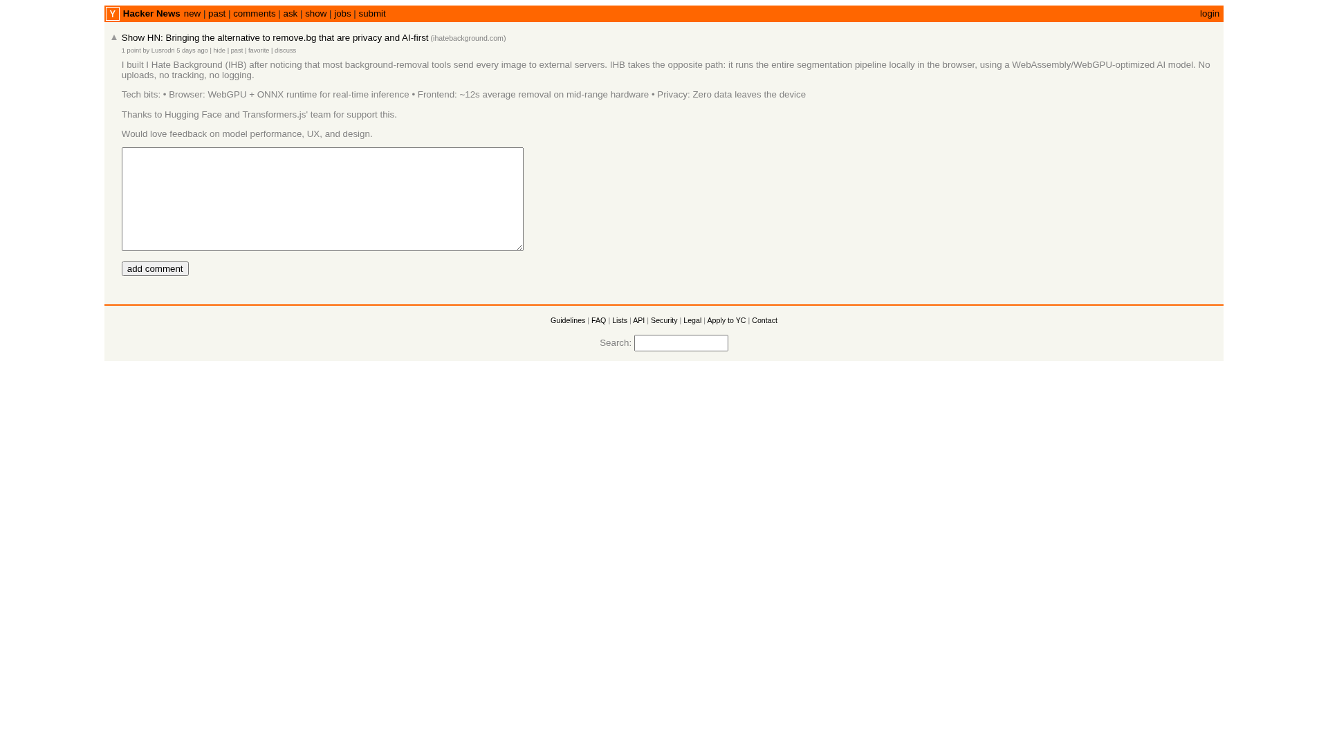 A browser-based, privacy-preserving background remover that runs entirely locally with WebGPU and ONNX, averaging ~12s per image on mid-range hardware.