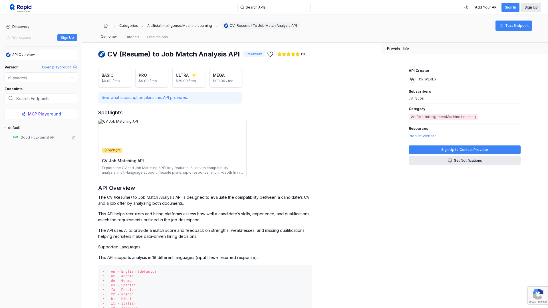 - ✗Full details may require signing into RapidAPI to view the Endpoint and Pricing tabs