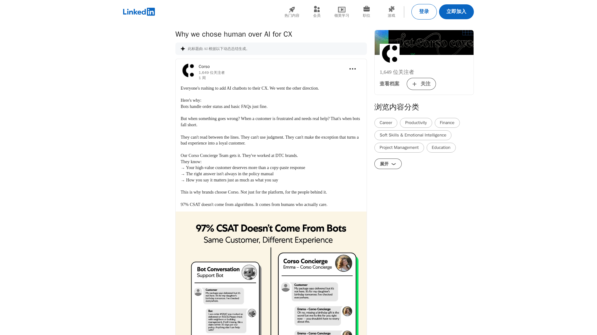 Corso argues that human agents, not AI, deliver superior CX through empathy, judgment, and tailored exceptions.