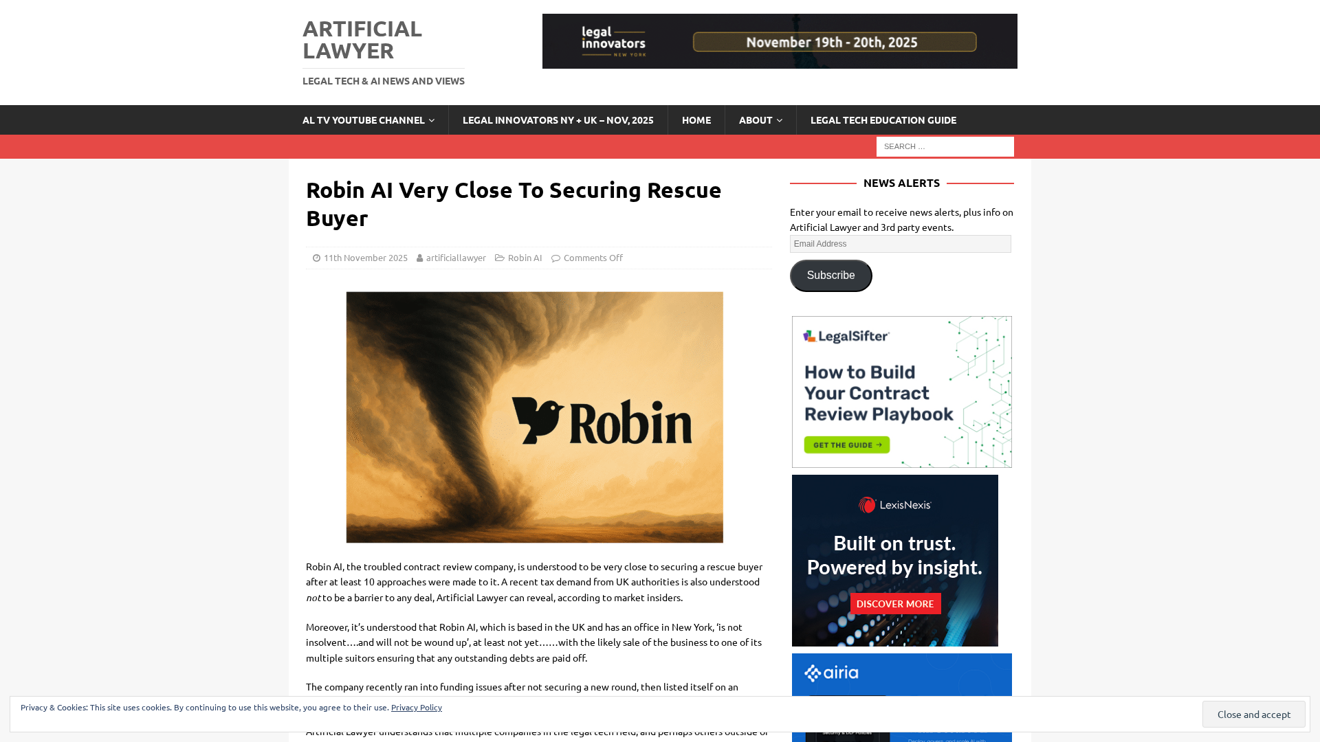 Robin AI nears a rescue buyout as suitors circle; debt issues expected to be resolved in a sale to a larger firm.