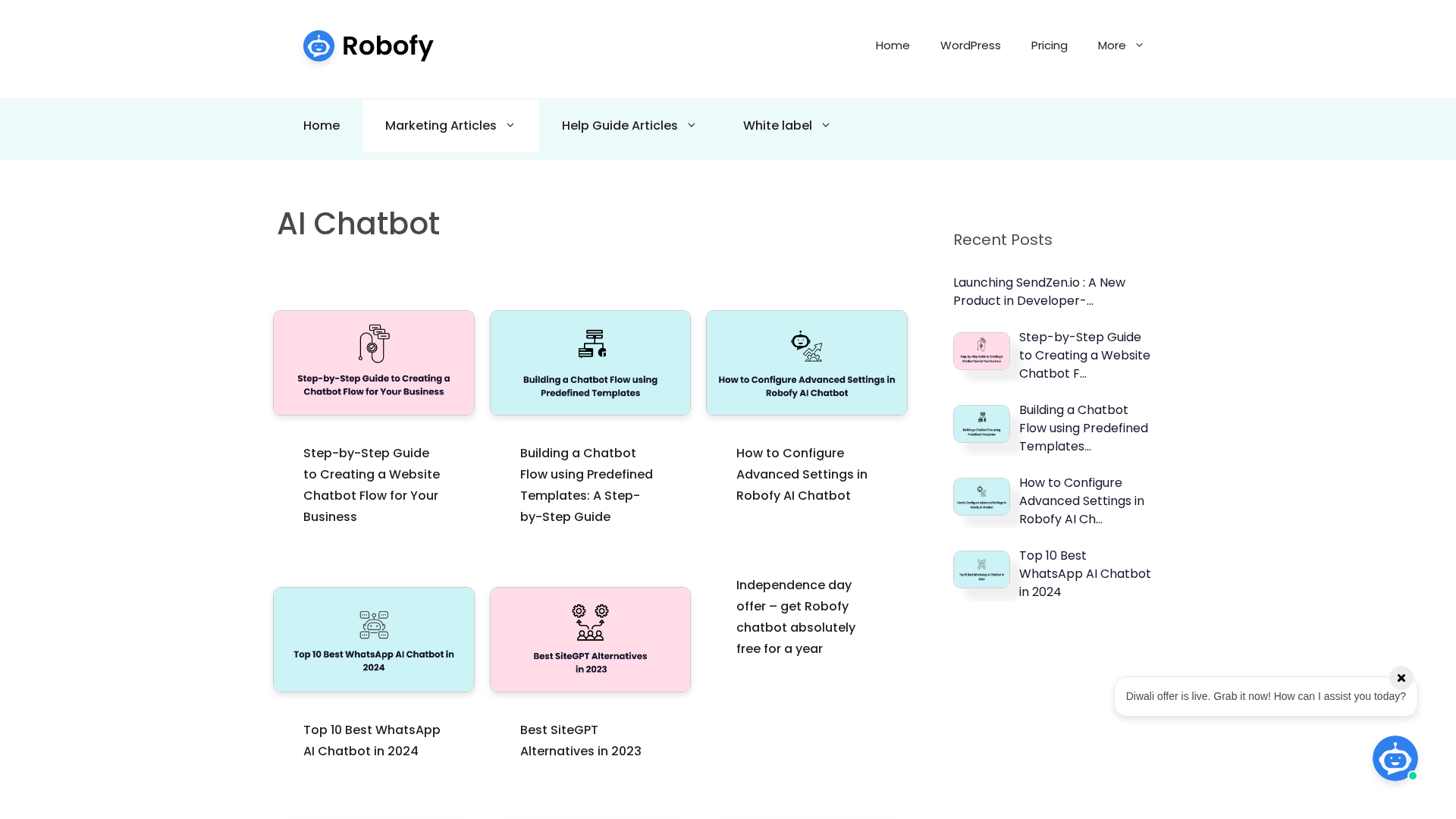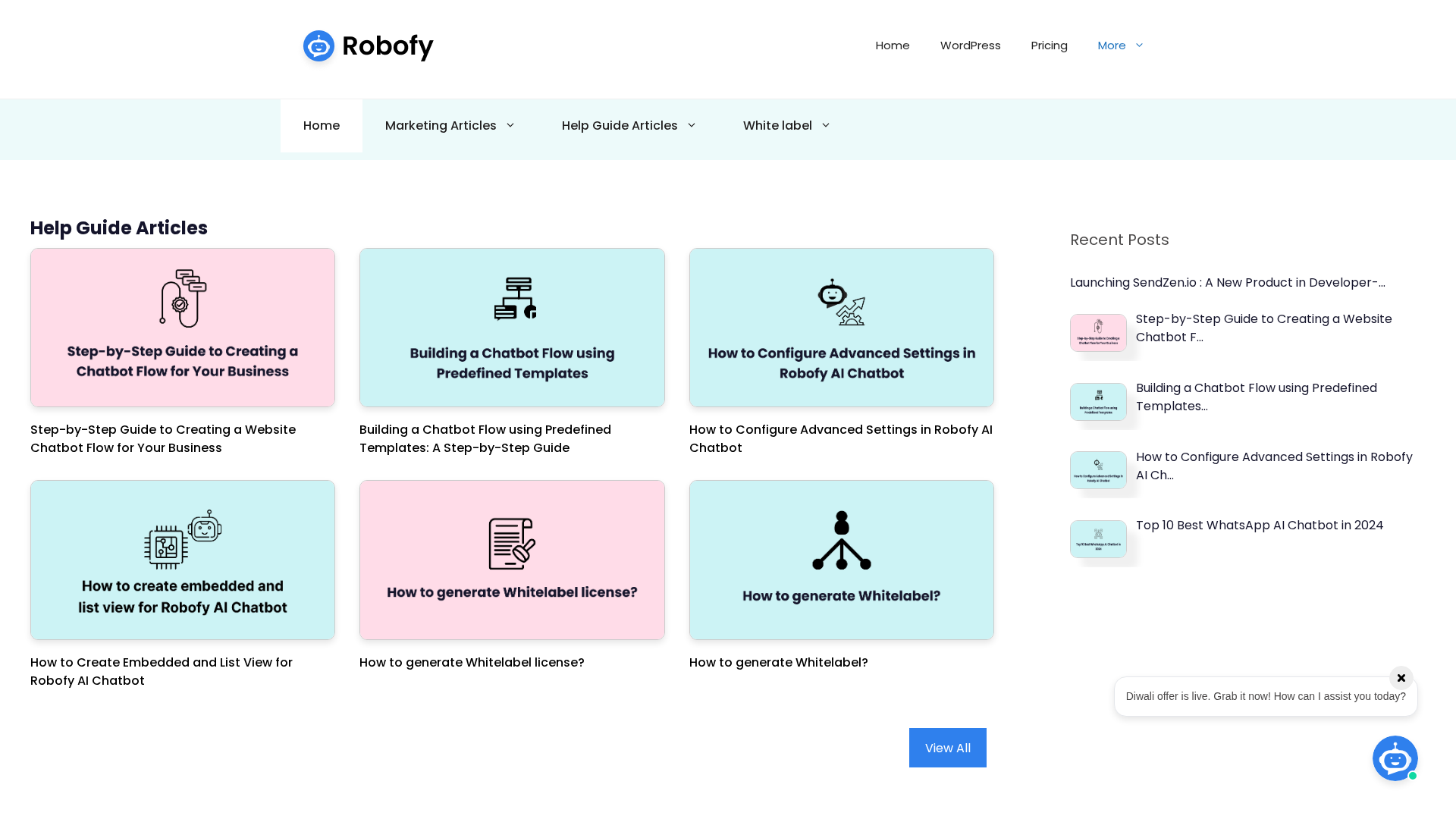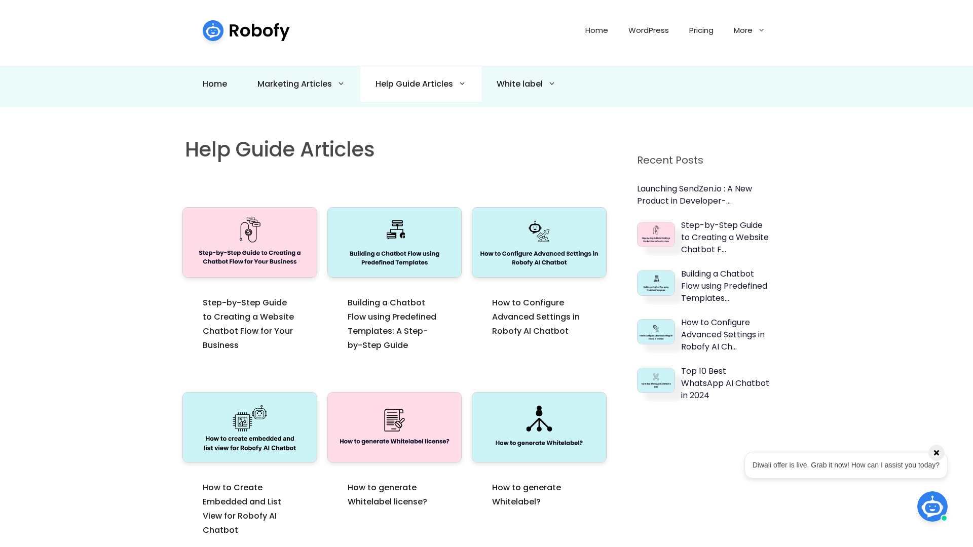 A comprehensive set of Robofy help guides for building, configuring, and deploying AI chatbots with templates, advanced settings, and WordPress integration.