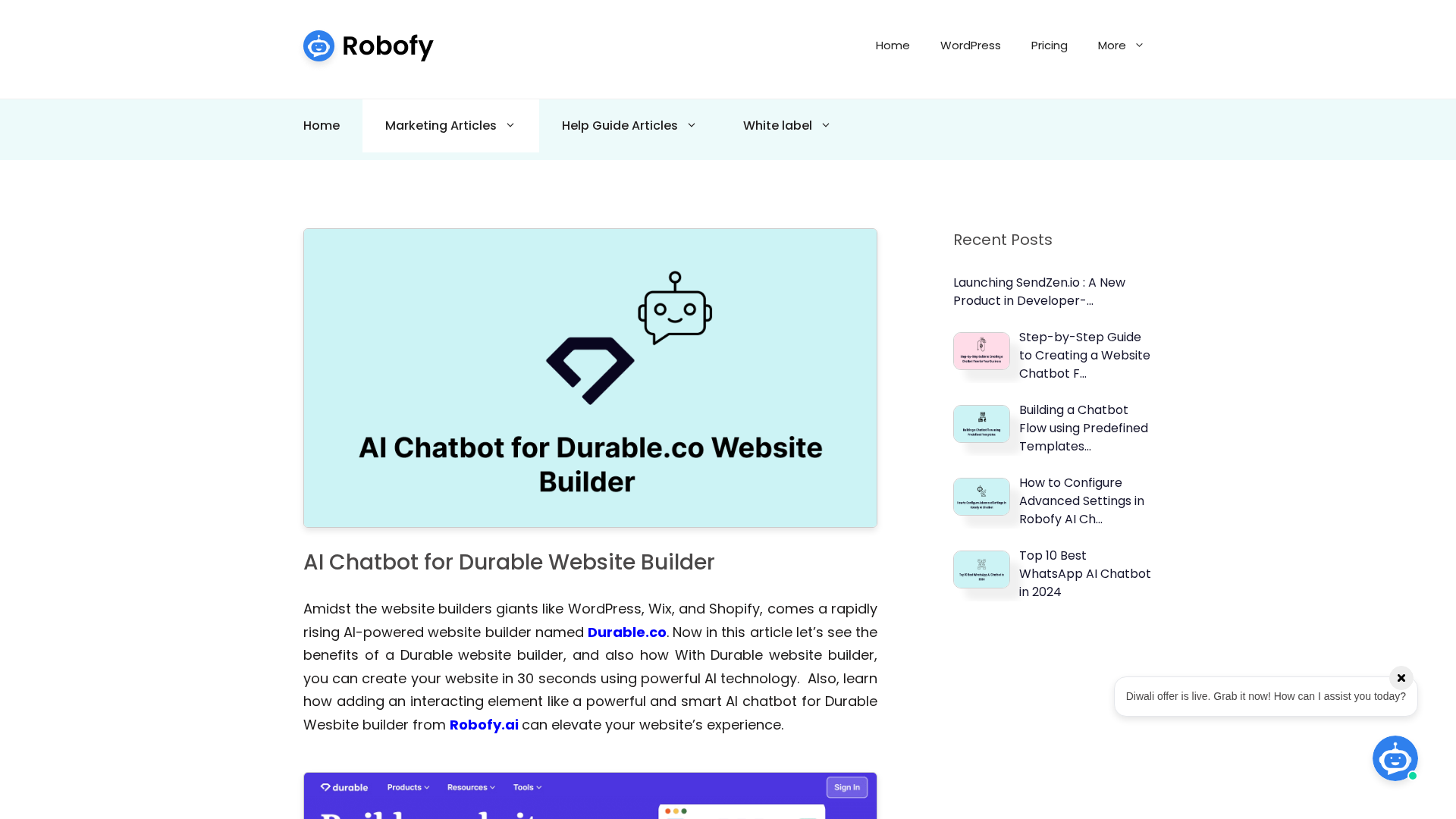 Learn how to integrate Robofy's AI chatbot with Durable.co to create an engaging, 24/7 responsive website in minutes.