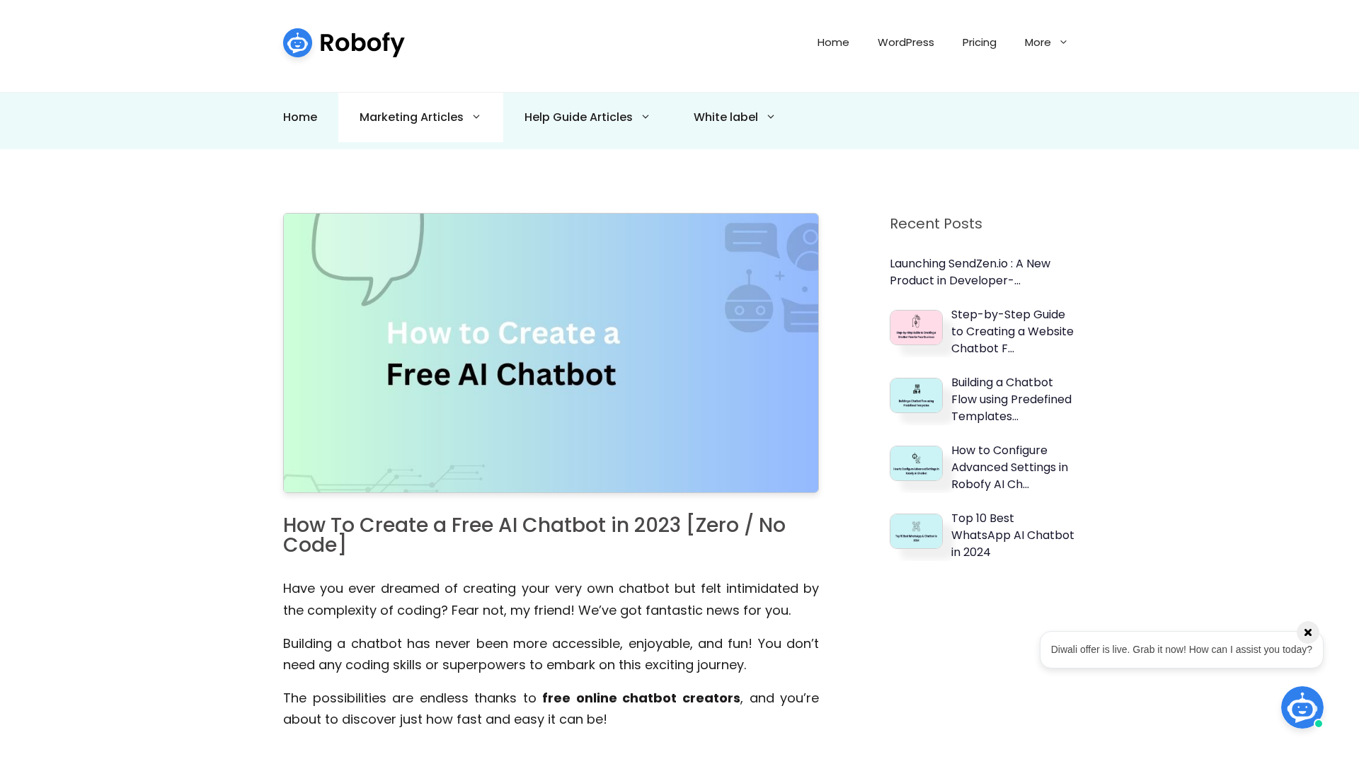 A step-by-step, zero-code guide to building a free AI chatbot for your website with Robofy.
