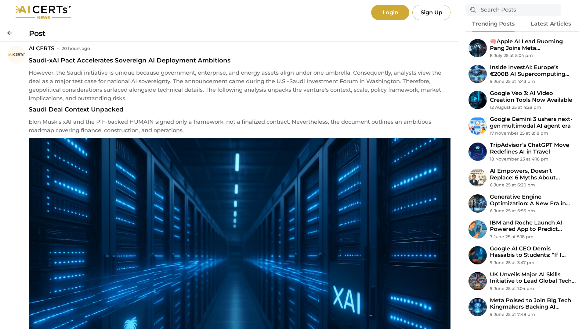 Saudi xAI-HUMAIN launches a government-enterprise AI layer with large-scale GPU deployment and multi-year sovereignty milestones.