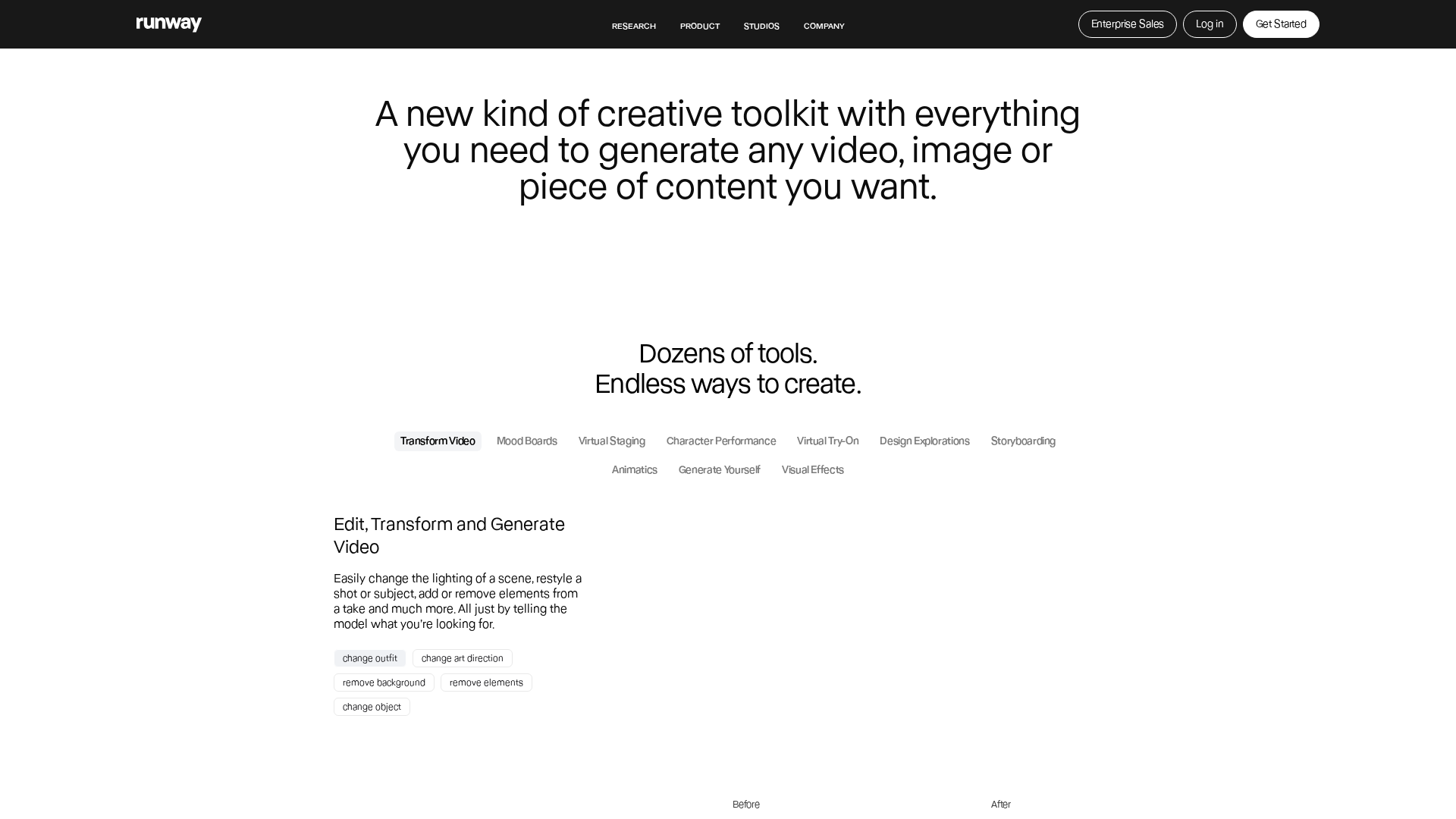 - ✓Strong generative video and image model offerings (Gen-4 and Gen-3 families)