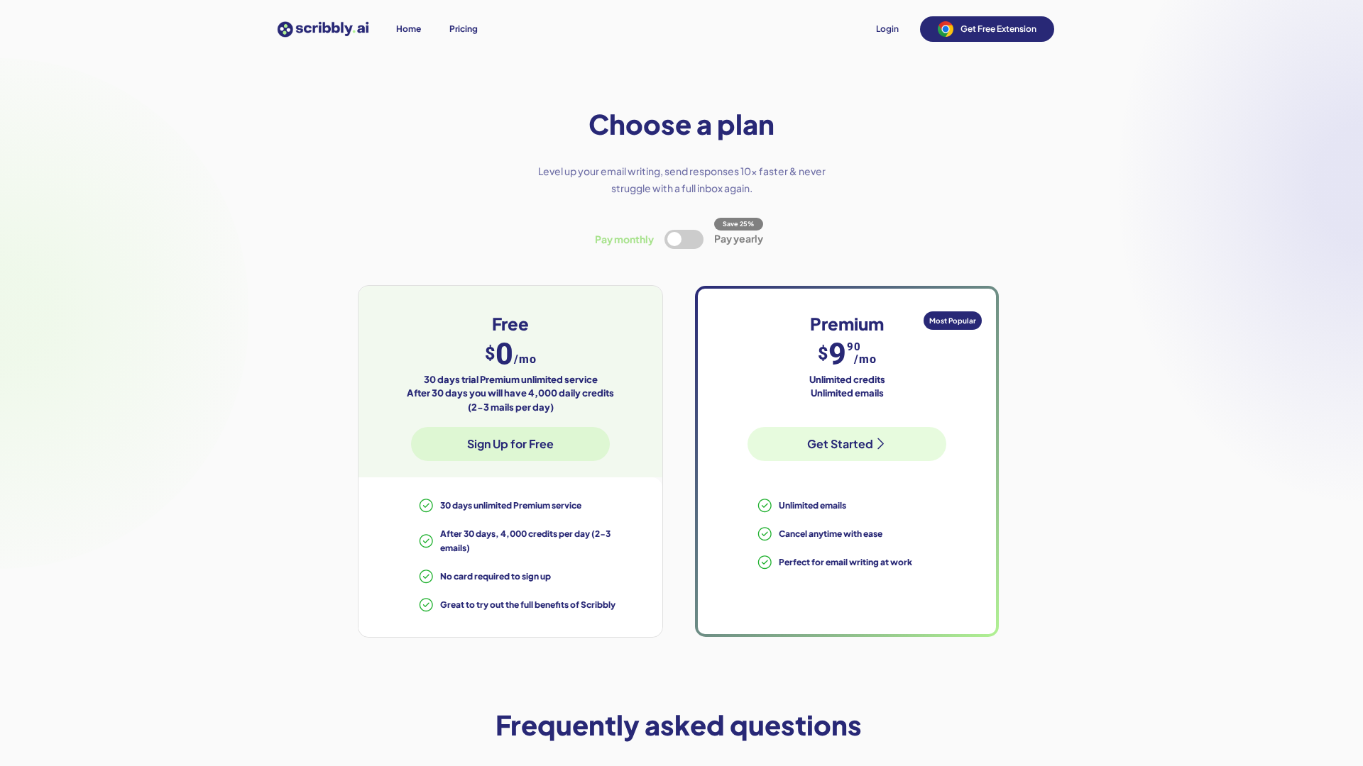 Overview of Scribbly’s pricing, signup steps, credits, and privacy details.