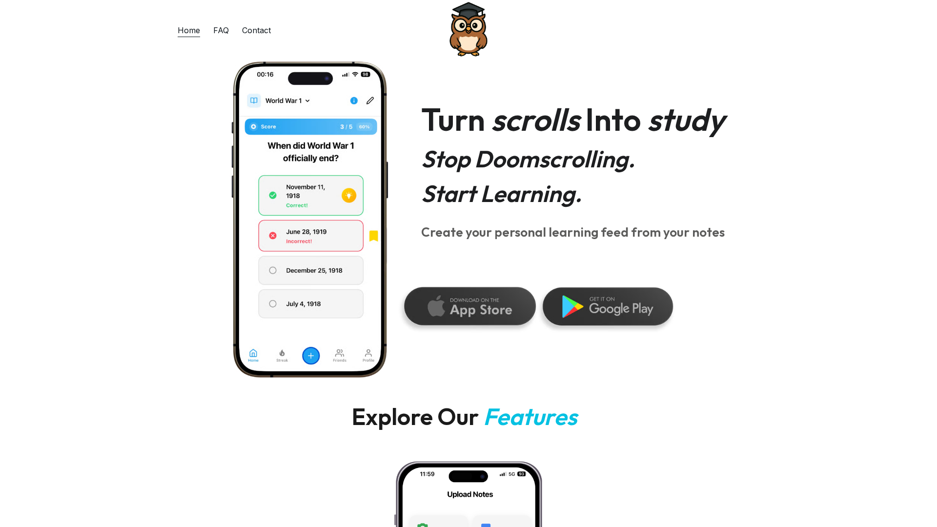 ScrollToStudy is branded as a Smart Learning platform with AI-assisted study workflows. The site identity includes the product name and developer (Marc Schrefel), but several key pages (Courses, Features, Plans/Pricing, About) on the site return a Website-Builder 404 page, while Privacy Policy, Terms & Conditions and a Contact page are accessible. The homepage emphasizes branding and support links but does not present detailed product or pricing content. The Privacy Policy outlines data categories (personal info, usage data, content uploads, device info), uses (service provision, analytics, conversion of uploaded content into learning cards), user rights, third-party providers, and notes that payment is handled by app stores. Terms & Conditions cover accounts, subscriptions via App/Play Stores with auto-renewal, content ownership, prohibited activities, disclaimers, and refunds constraints. Off-site app store listings provide more complete product descriptions, with a freemium model and Pro subscriptions; exact regional prices are not shown on the website. Recommended next steps include checking region-specific store listings for prices, requesting contract details via support, and testing features via the app stores.