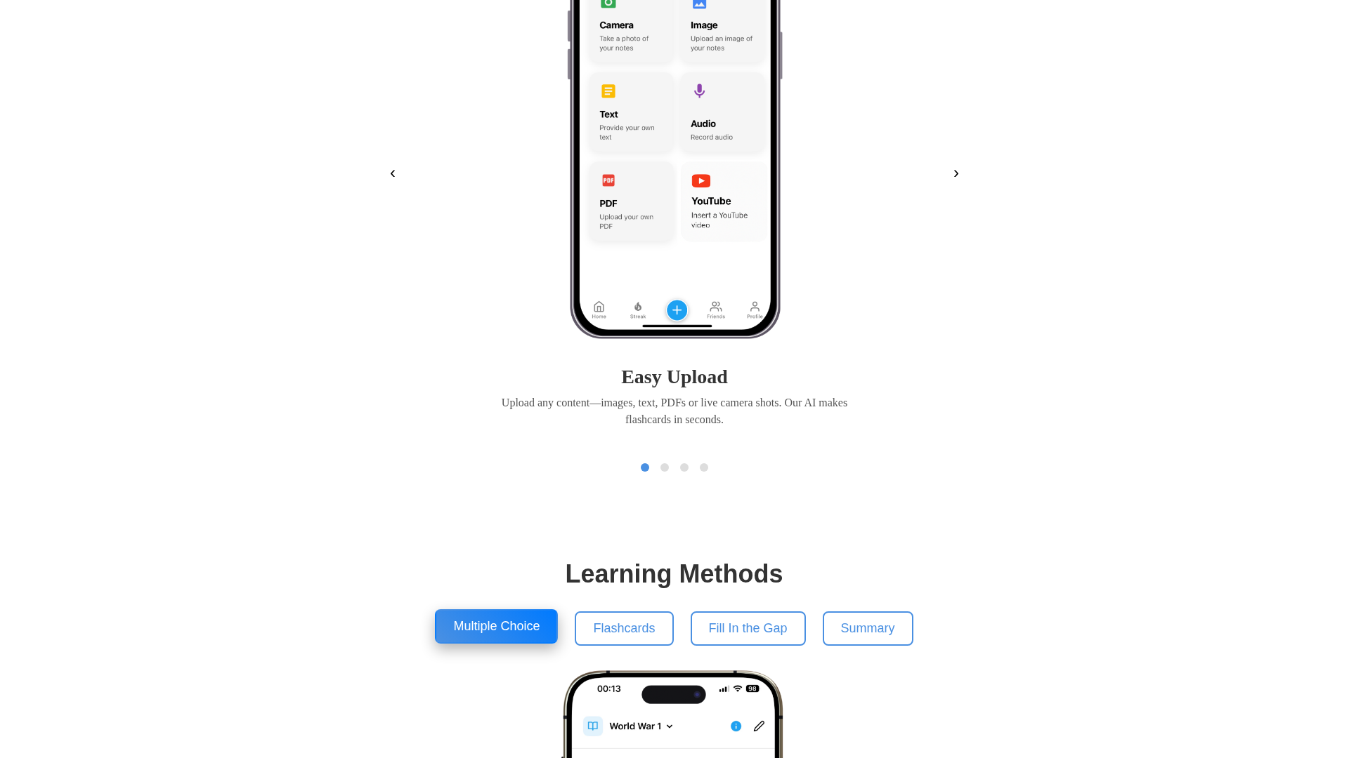 Smart flashcards with adaptive, spaced-repetition style quizzes.