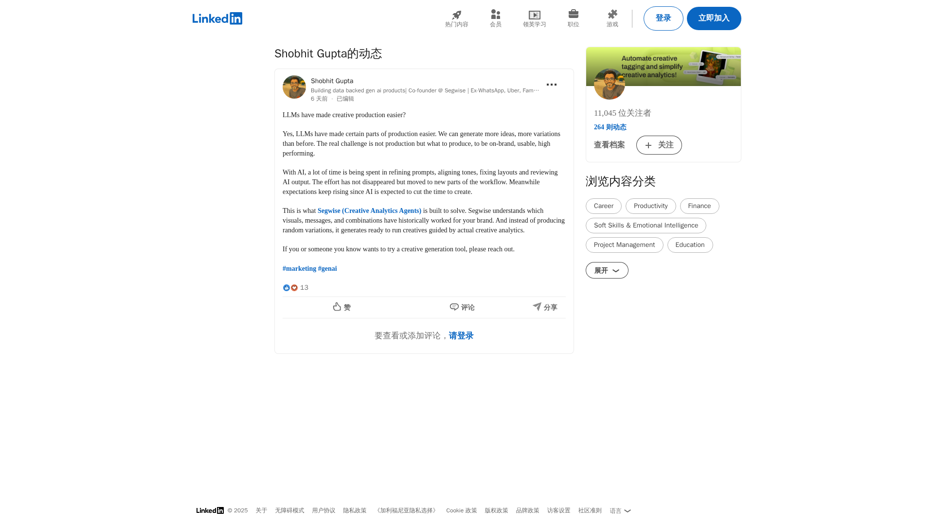 Segwise uses AI agents to unify, tag, and optimize ad creative across networks to boost ROAS.
