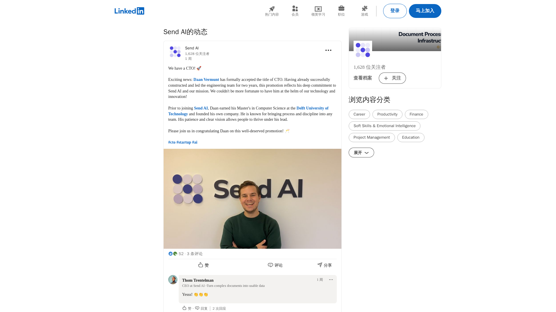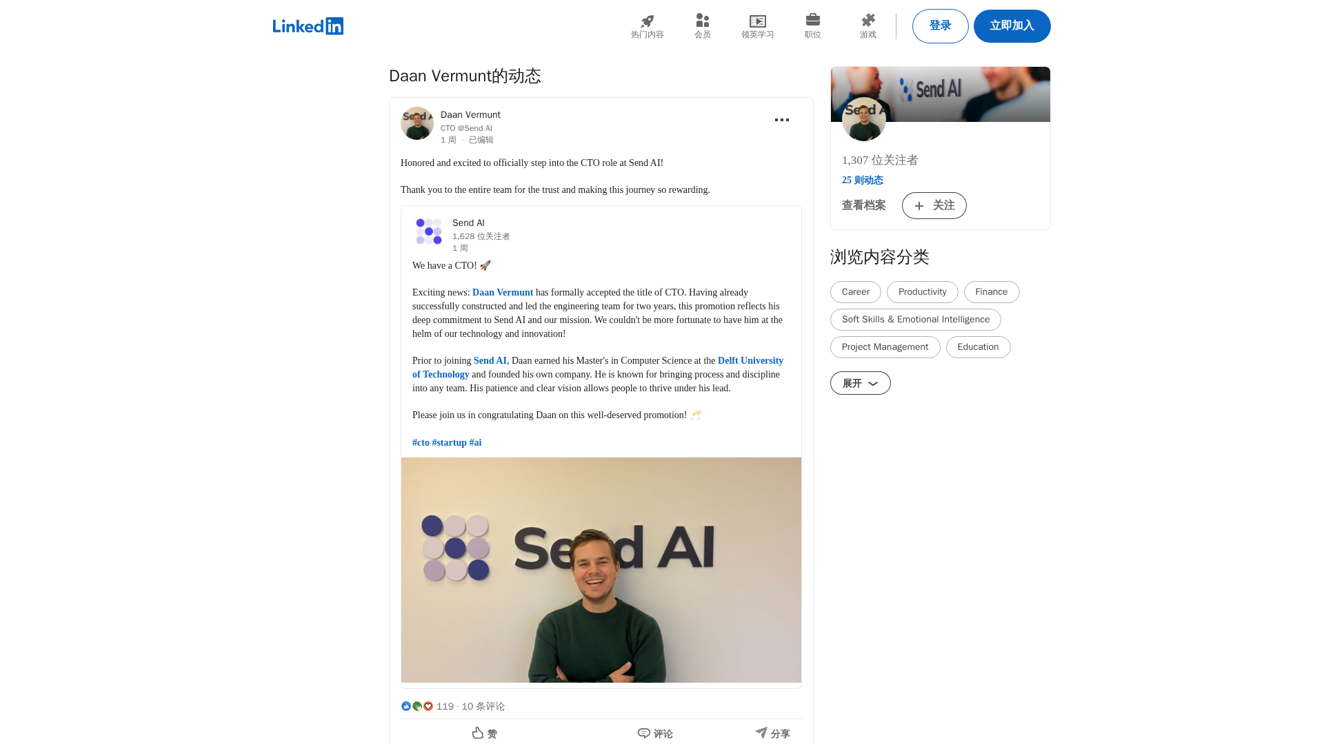 Daan Vermunt is announced as CTO of Send AI, highlighting his leadership of the engineering team and commitment to the company's mission.