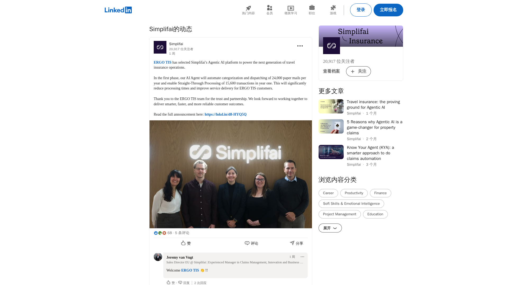 ERGO TIS selects Simplifai's Agentic AI to automate paper mail handling and transaction processing in travel insurance (phase 1).