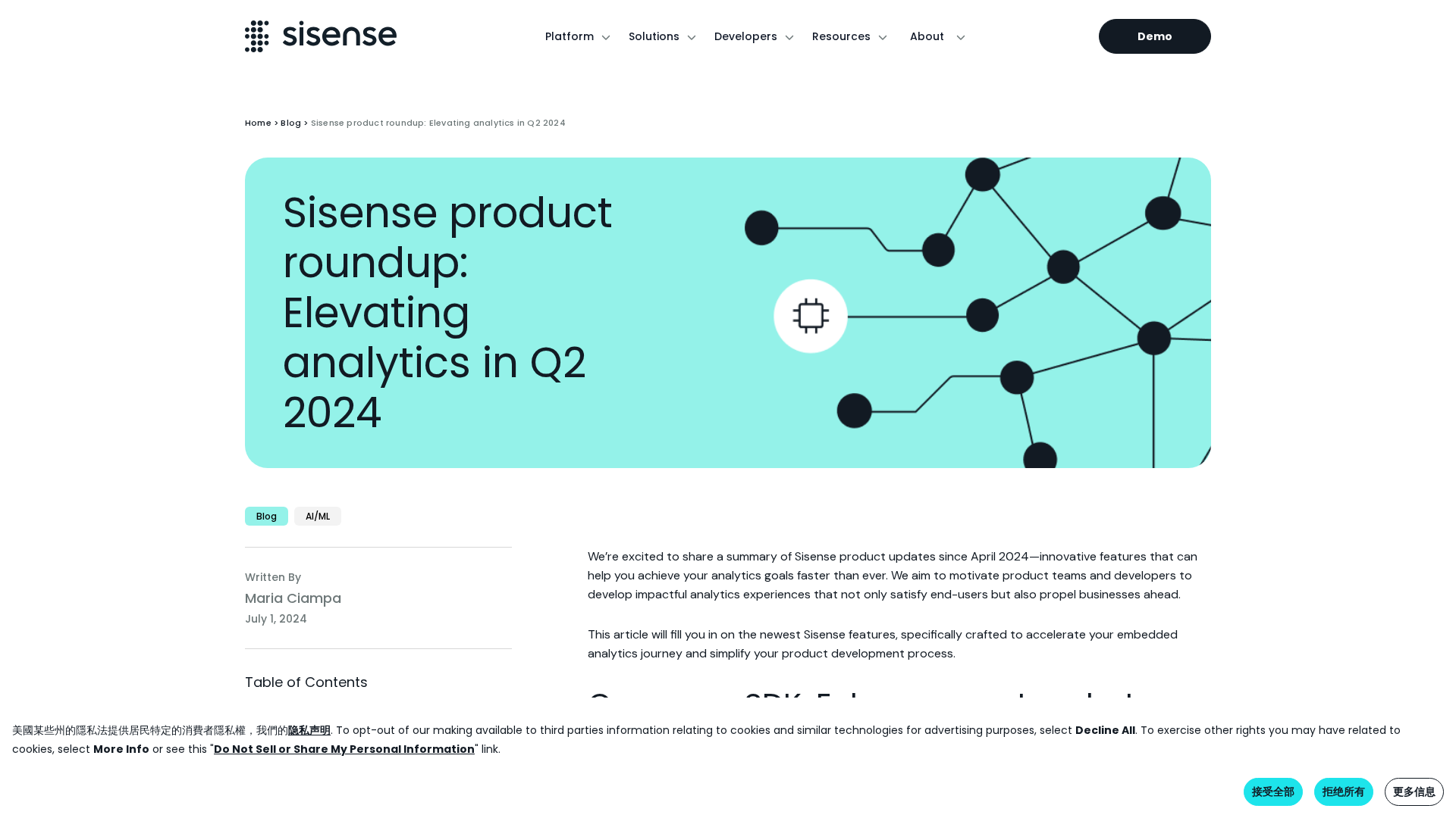 Sisense reveals Q2 2024 updates: Compose SDK goes GA, Conversational Analytics enters beta, Mobile 3.0 arrives, and AI-driven exploration and security improvements unfold.