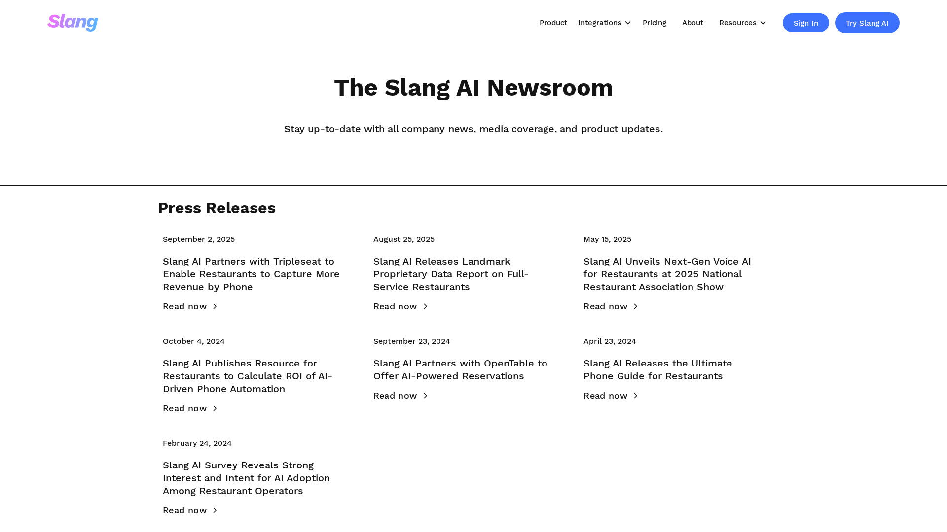 A snapshot of Slang AI's press releases, media coverage, and product updates shaping AI-driven restaurant experiences.