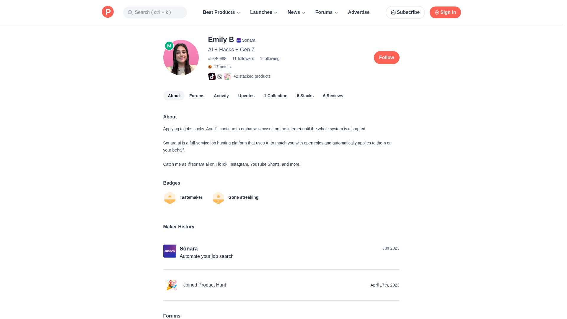 Emily B highlights Sonara.ai, an AI-powered platform that matches jobs and auto-applies on your behalf, on Product Hunt.