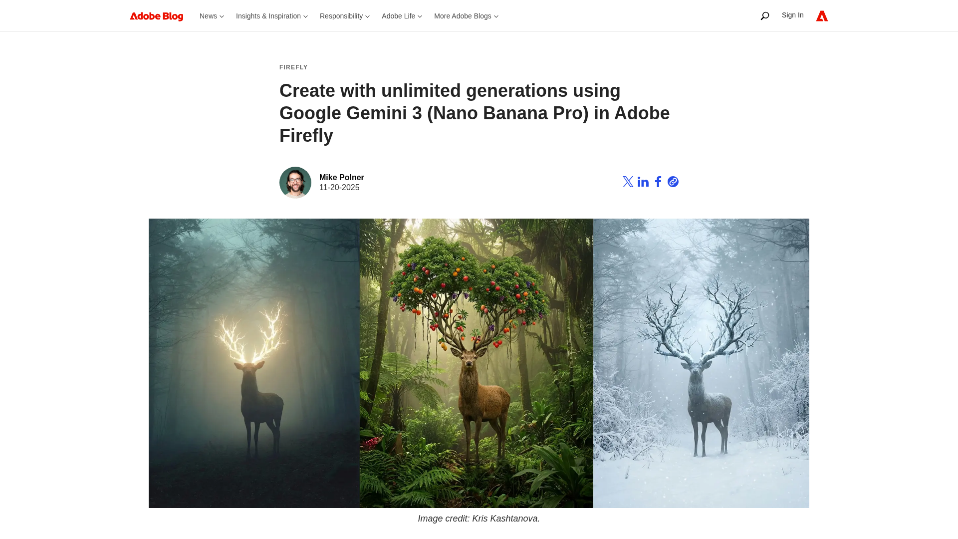Adobe adds Google Gemini 3 Nano Banana Pro to Firefly and Photoshop, enabling unlimited image generations (through Dec 1) and advanced prompt-based editing.