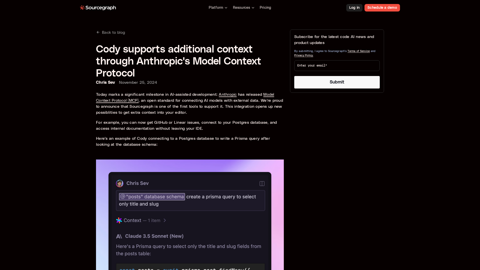 Cody now supports Anthropic's MCP to pull external data into your editor via OpenCtx.