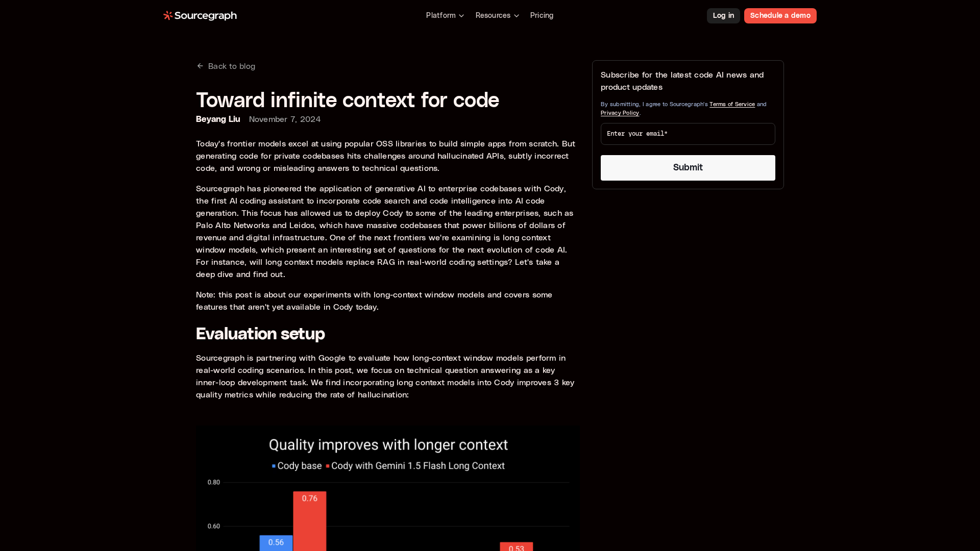 Explores long-context window models for Cody, measuring performance, hallucination, and retrieval strategies in enterprise codebases.