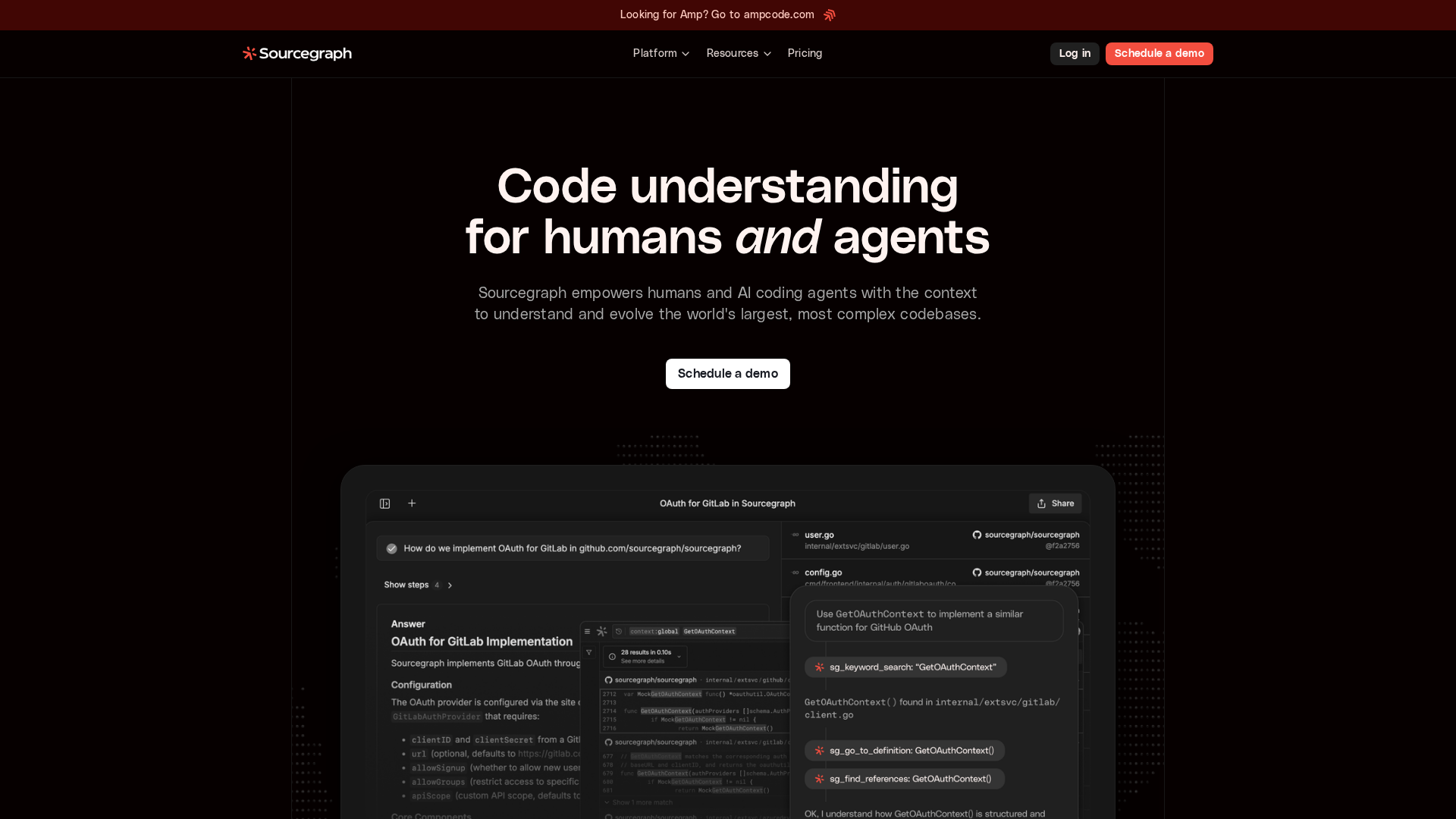 Sourcegraph is an enterprise code understanding platform that empowers humans and AI agents to search, understand, and automate across large codebases.