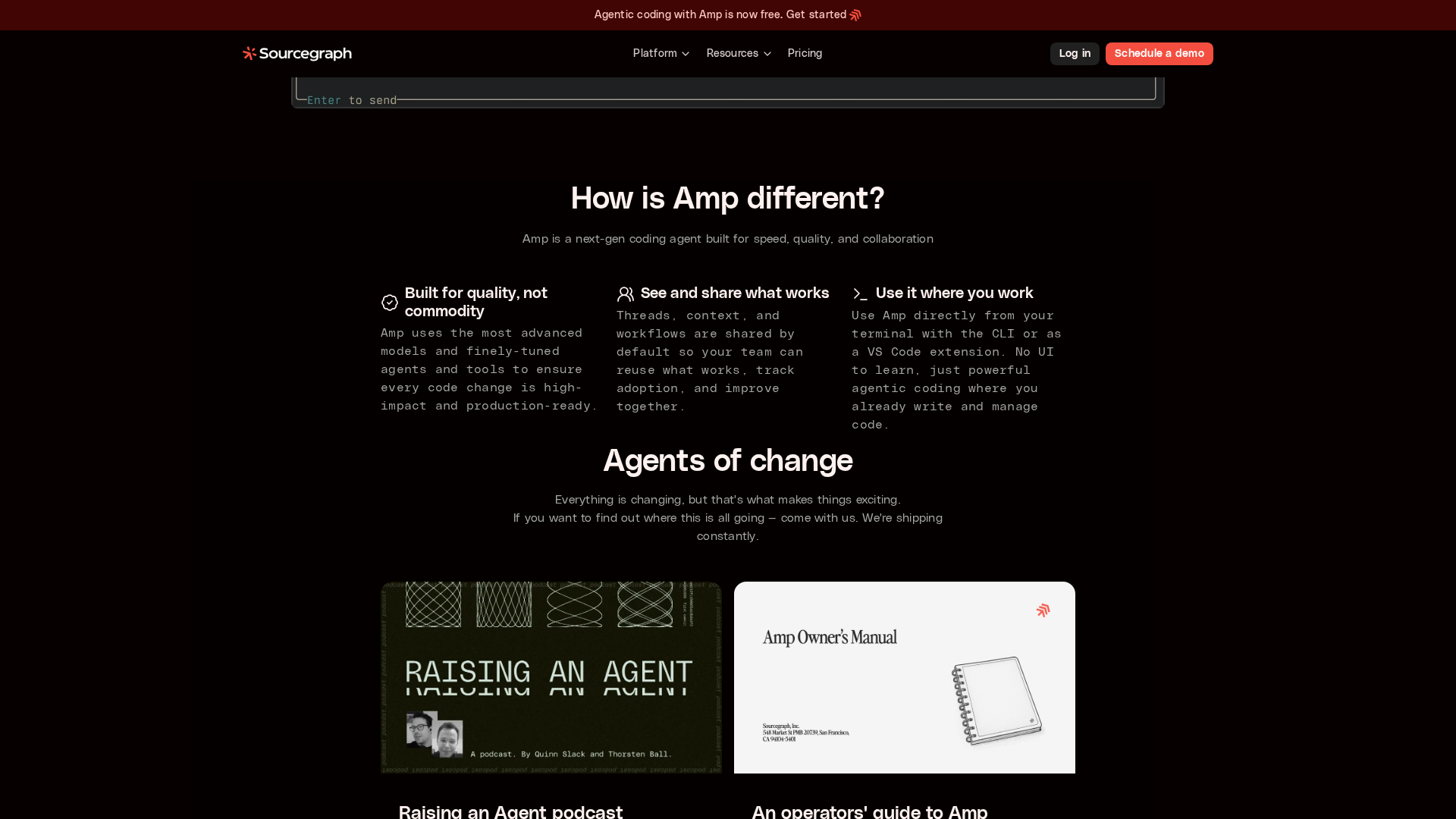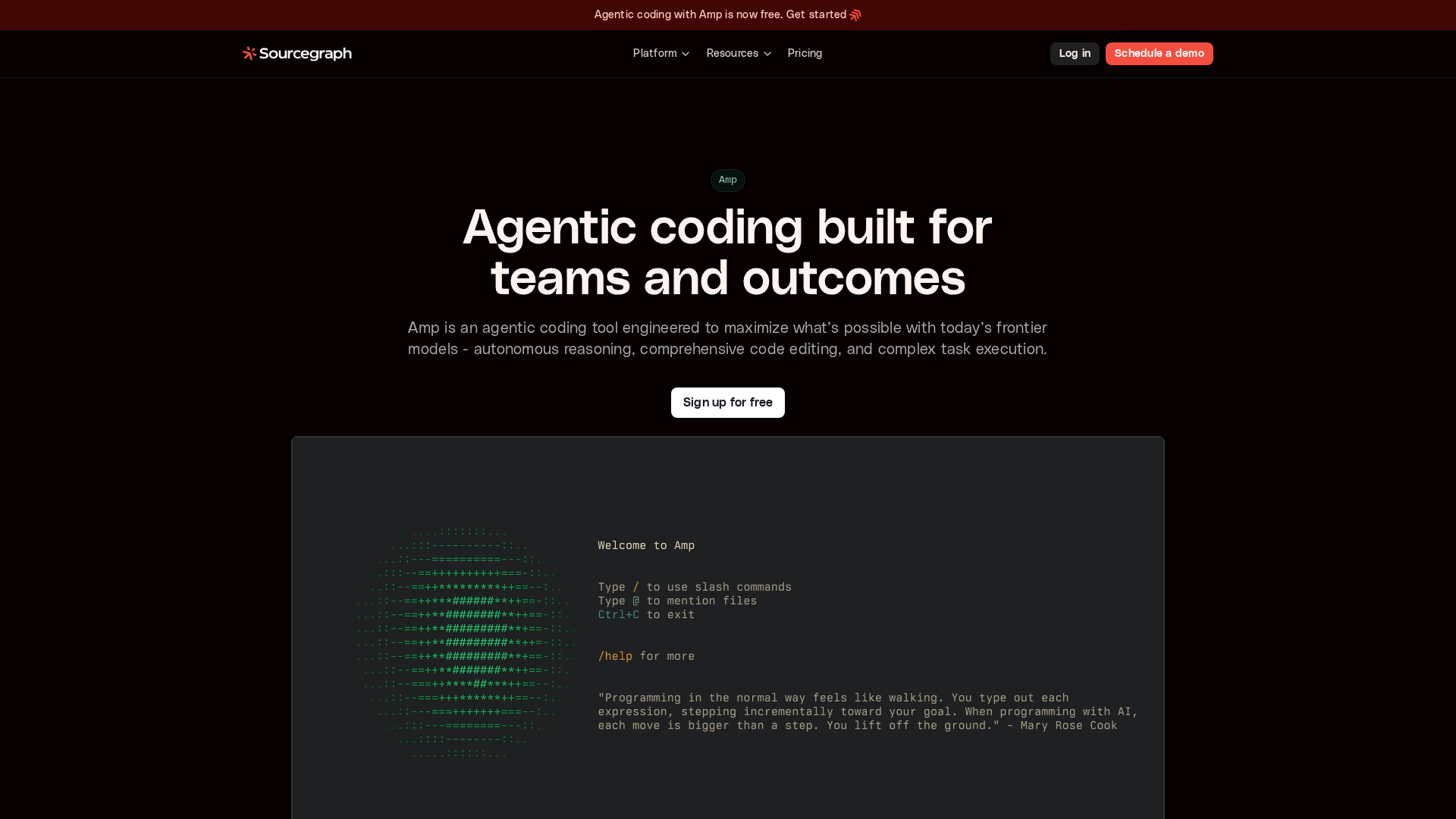 Sourcegraph is steering users from Cody toward Amp; Amp is positioned as the next-gen agent product and recommended path for most users.