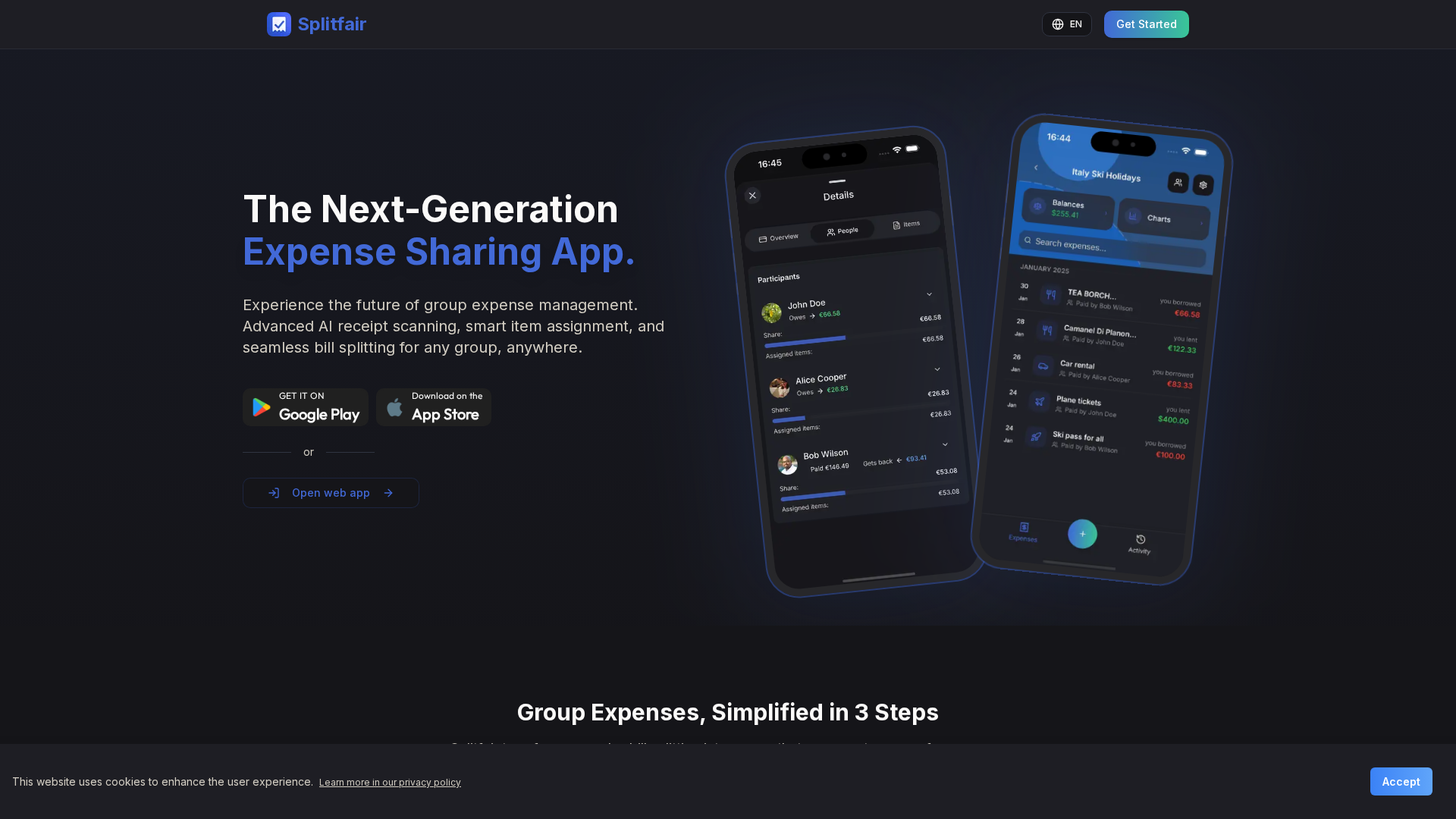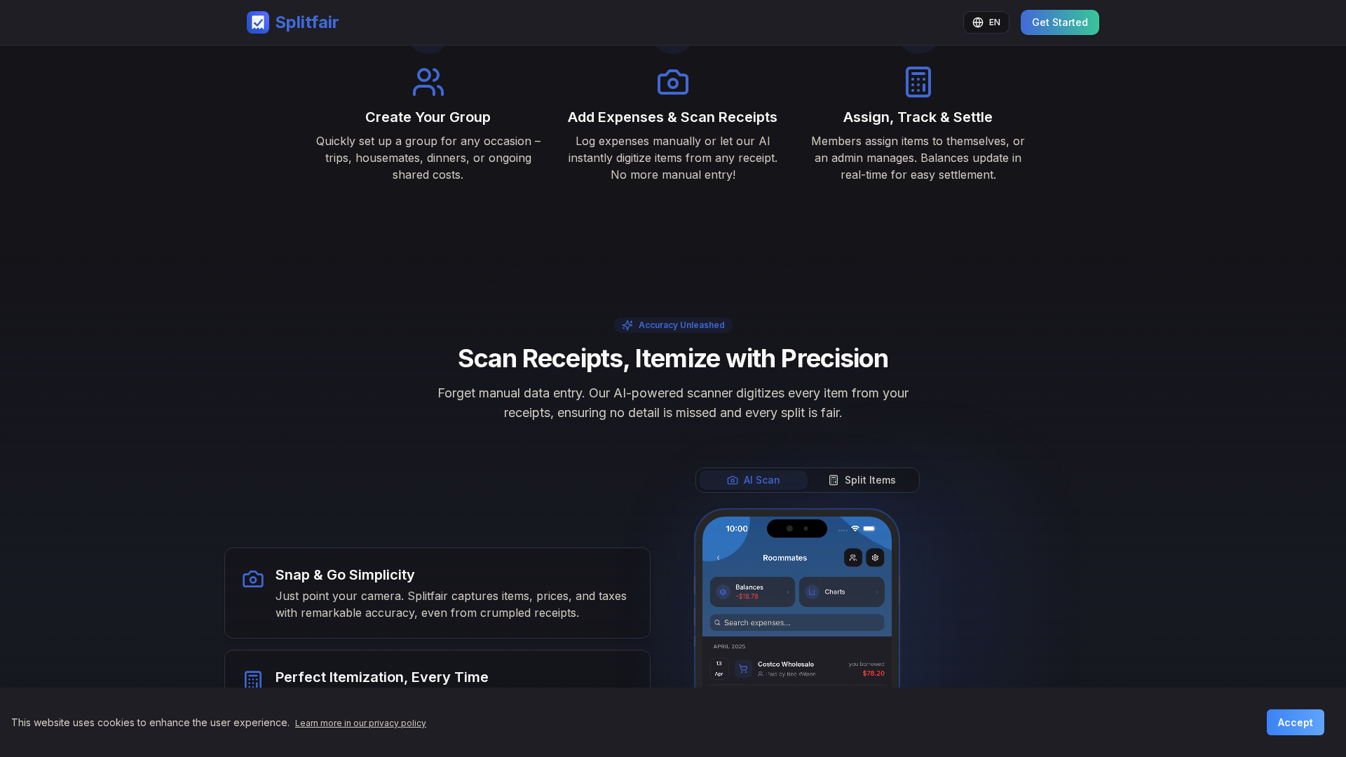 AI-powered group expense sharing with AI receipts, visual splitting, and easy Splitwise imports.
