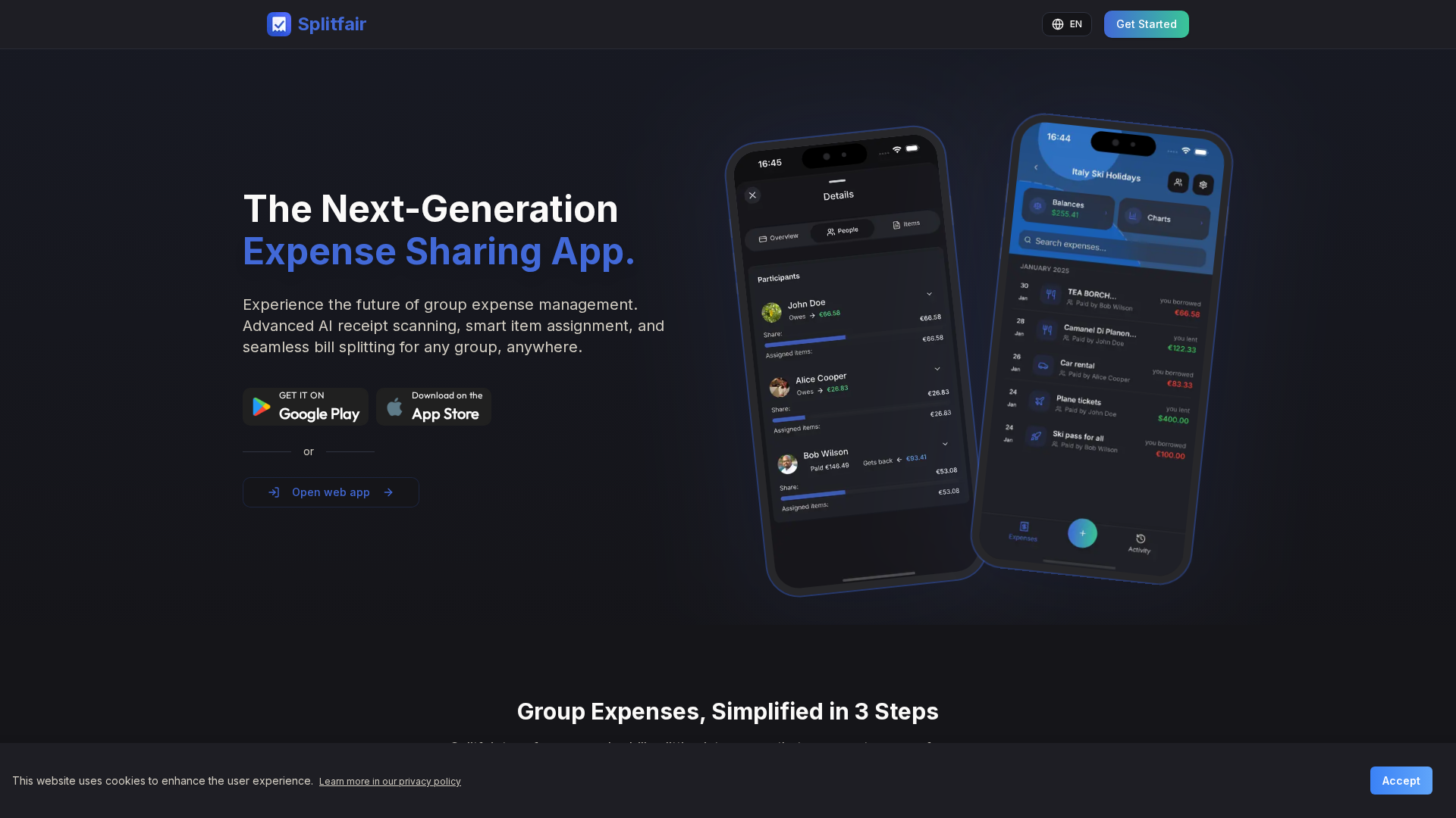 SplitFair! makes group expense tracking, balance visibility, and settlements quick and fair for trips, meals, rent, and more.