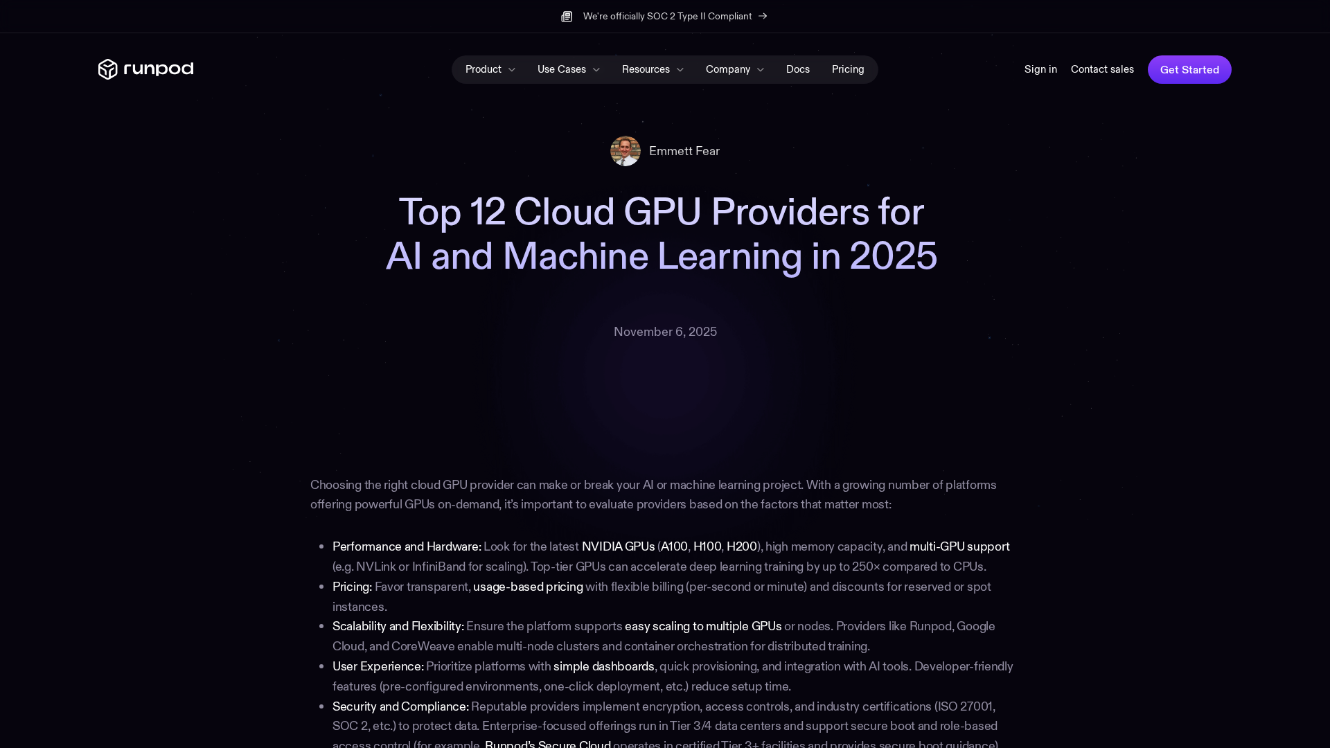 A comprehensive 2025 comparison of 12 cloud GPU providers for AI/ML, covering hardware, pricing, scalability, and deployment options.