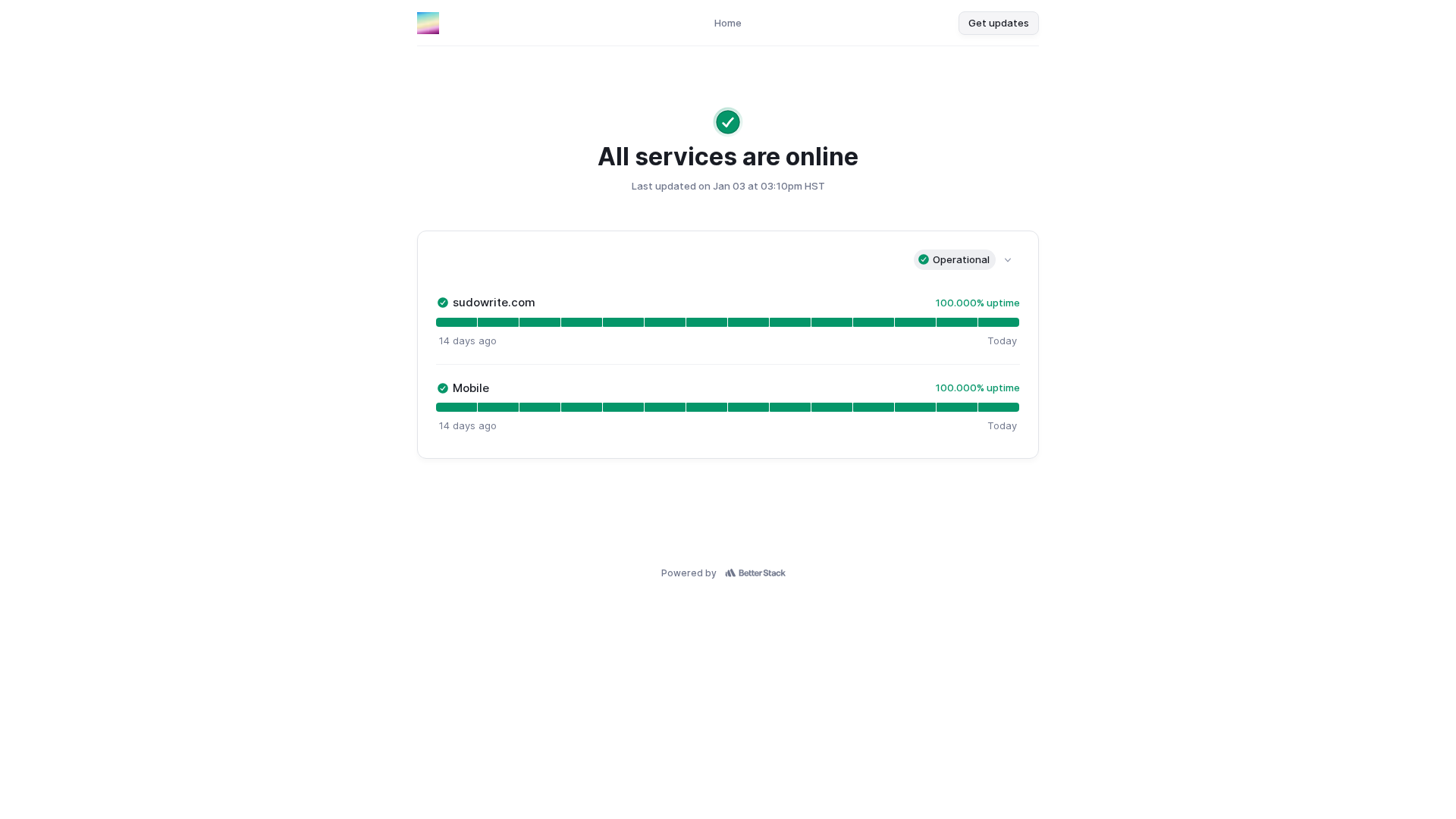 Stay updated on Sudowrite incidents with email alerts and a JSON status feed.