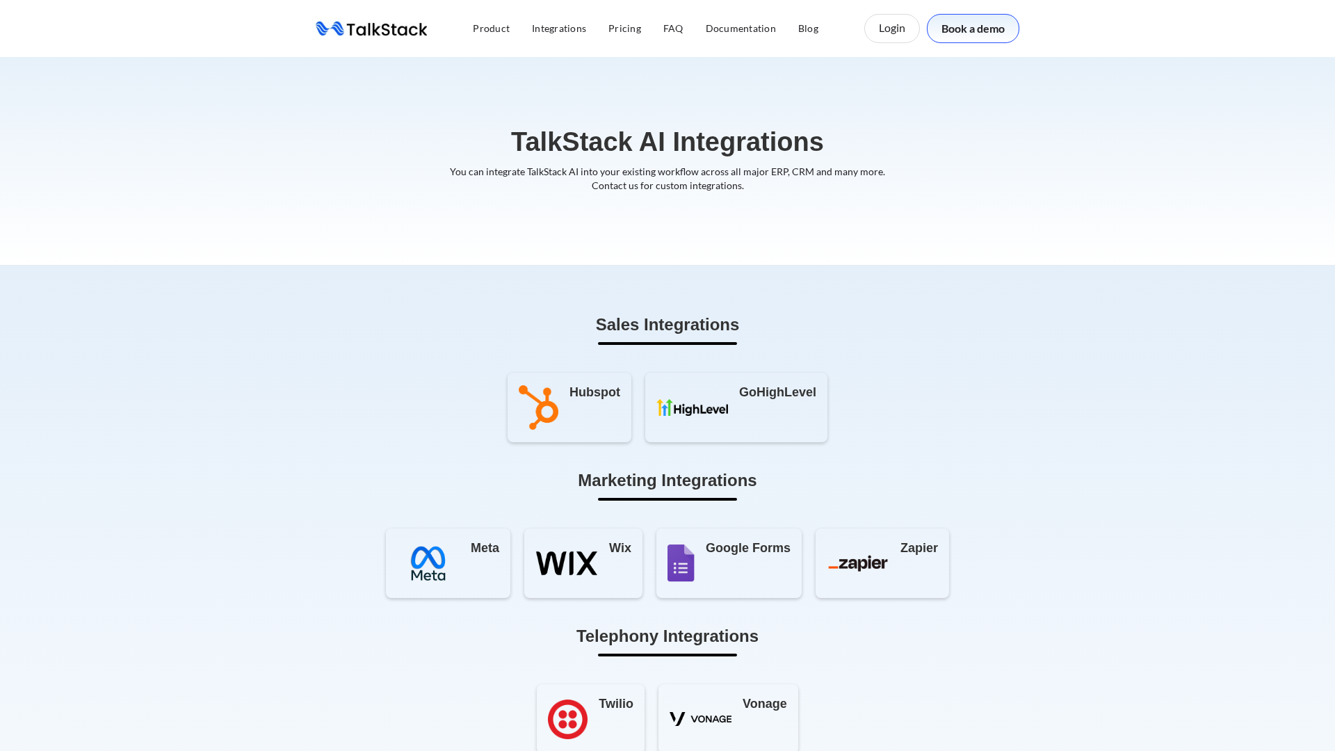 TalkStack AI offers seamless integrations with major ERP/CRM systems and other platforms, with custom integration options available.