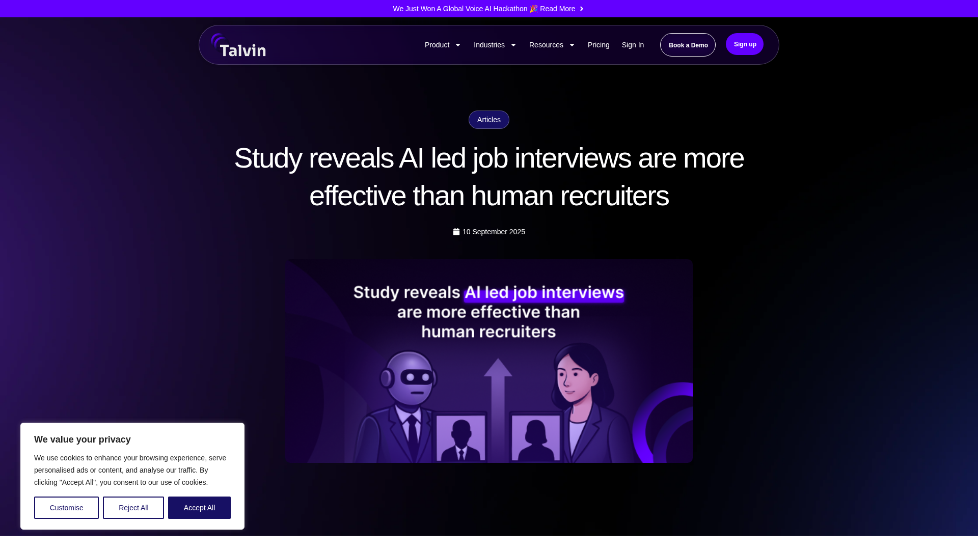 Talvin AI wins the Vapi Build Challenge 2025 with Job Tryouts, a voice AI-driven hiring simulation developed in 14 days.