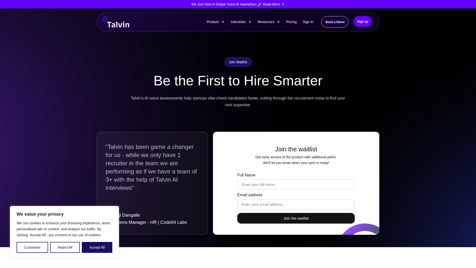 AI-powered voice assessments speed up candidate screening—join Talvin's waitlist for early access and perks.