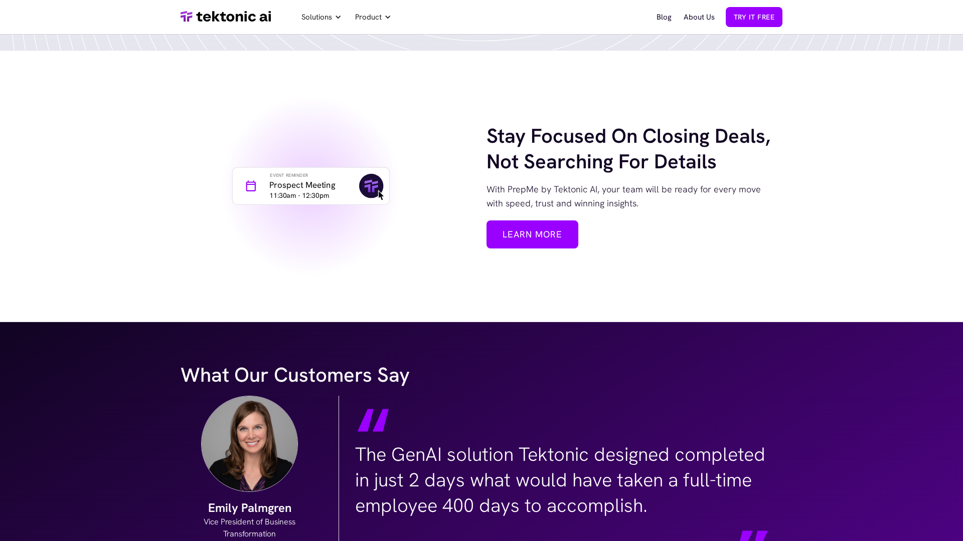 Tektonic AI positions itself as a provider of AI agents and a "service layer" that combine neural (ML/GenAI) and symbolic reasoning to automate and improve enterprise processes, with a focus on revenue operations, sales meeting briefs, and data quality. The core product highlighted on the site is PrepMe, which provides real-time AI-generated sales meeting briefs that surface attendee profiles, tailored talking points, competitive intelligence, and deal-specific insights directly in reps' workflows. Pages inspected and summary: Home (https://www.tektonic.ai/) — tagline "Sales Meeting Briefs Powered by AI", messaging about fixing CRM/data chaos, automating workflows, and CTAs for demos. PrepMe product page (https://www.tektonic.ai/prepme) — product focus on real-time meeting briefs; integrations listed (Salesforce, HubSpot, Gong, Outreach, Google Workspace); claimed benefits include up to ~30% higher win rates, large time savings (prep reduced from hours to seconds), and improved coaching outcomes; demo request CTA. About Us (https://www.tektonic.ai/about-us) — founders/leadership: Nic Surpatanu and David Hsu; hires from major tech firms; company based in the Seattle area and hiring engineering roles. Playbook / lead-gen briefing (linked from homepage) — example: "Tektonic AI’s Playbook for OptiLogix" demonstrating a targeted use-case for manufacturing/distribution (predictive inventory, logistics optimization, demand forecasting, supplier risk); includes marketing claims such as SOC 2 compliance, 95%+ data accuracy, and 90%+ reduction in manual work for some tasks. Terms of Service (https://www.tektonic.ai/terms-of-service) — mentions subscription pricing model and taxes; no public price list; contact email [email protected]. Privacy Policy (https://www.tektonic.ai/privacy) — standard privacy references and contact for data subject requests. External coverage noted on/around the site: TechCrunch reported a $10M seed raise (June 2024) to build GenAI agents for business operations; investor coverage references Madrona Venture Group and Point72 Ventures (referenced in site/investor writeups). These coverage items were noted in the review; direct external article URLs were not captured in the review notes. Notable product claims and metrics observed: PrepMe claims up to ~30% higher win rates, faster pipeline movement, and reduced prep time from hours to seconds. The playbook and marketing materials include claims such as SOC 2 compliance, 95%+ data accuracy for certain data tasks, 90%+ reduction in manual work in some workflows, and "100x faster data operations" for select tasks. These are marketing claims and should be validated via evidence/case studies. Integrations and technical touches: explicit integrations listed include Salesforce, HubSpot, Gong, Outreach, and Google Workspace (email/calendar). Emphasis on real-time CRM sync and embedding insights into existing workflows to minimize context switching. No public API or developer documentation was found on the site during the review. Gaps / items not publicly available: no public pricing or tier details (Terms reference subscriptions but no price list); limited public security/compliance documentation beyond marketing claims (e.g., SOC 2 mentioned in playbook); limited detailed case studies naming customers with quantified outcomes (playbook is illustrative); no product roadmap, detailed feature matrix, or integration/API technical guides were found; a specific contact form URL for demos/contacts was not obvious though demo CTAs exist and legal/privacy email is [email protected]. Suggested next steps for evaluation or outreach: request a live, tailored demo of PrepMe focused on your specific use case and ROI numbers; ask for pricing and packaging details (per-seat vs enterprise, pilot pricing, minimums); request security/compliance documentation (SOC 2 report, data handling and retention policies, encryption details, vendor security questionnaire responses); request customer references or case studies that substantiate the marketing metrics; confirm integration details and implementation timeline (CRM connector requirements, access levels, time-to-value, data mapping responsibilities); schedule finance/ROI and technical deep-dive sessions if evaluating for RevOps/IT. Contact and outreach: [email protected] is referenced in legal/privacy pages and demo/contact CTAs are present on the homepage and PrepMe page.