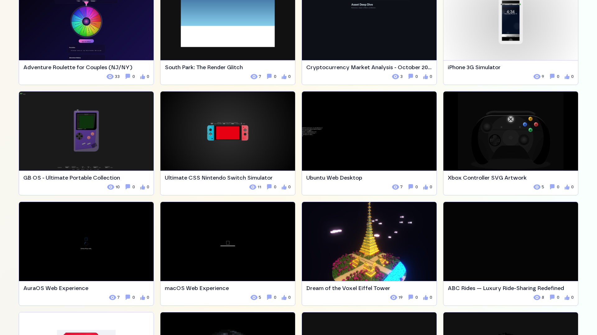 Browse web apps, videos, 3D models, sprites, and sandbox items. Discovery-focused UI with sorting by popularity and recency for community content.