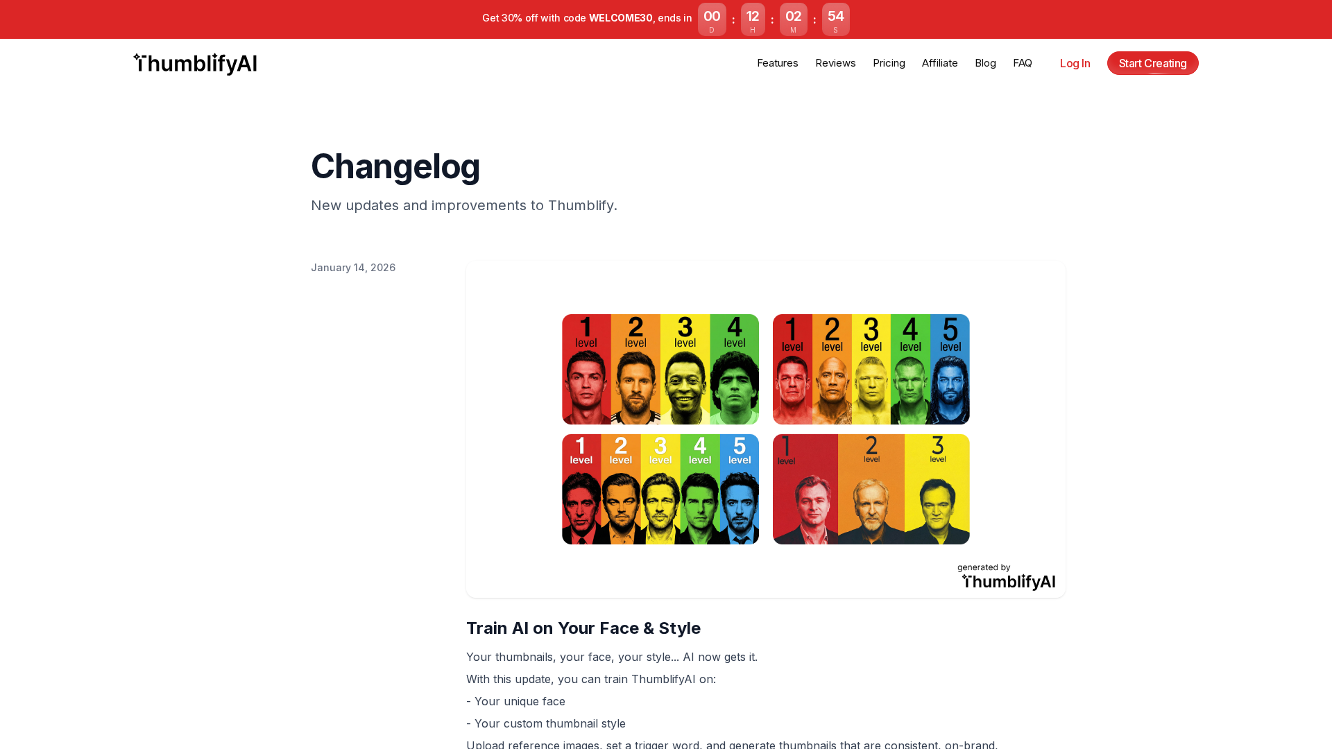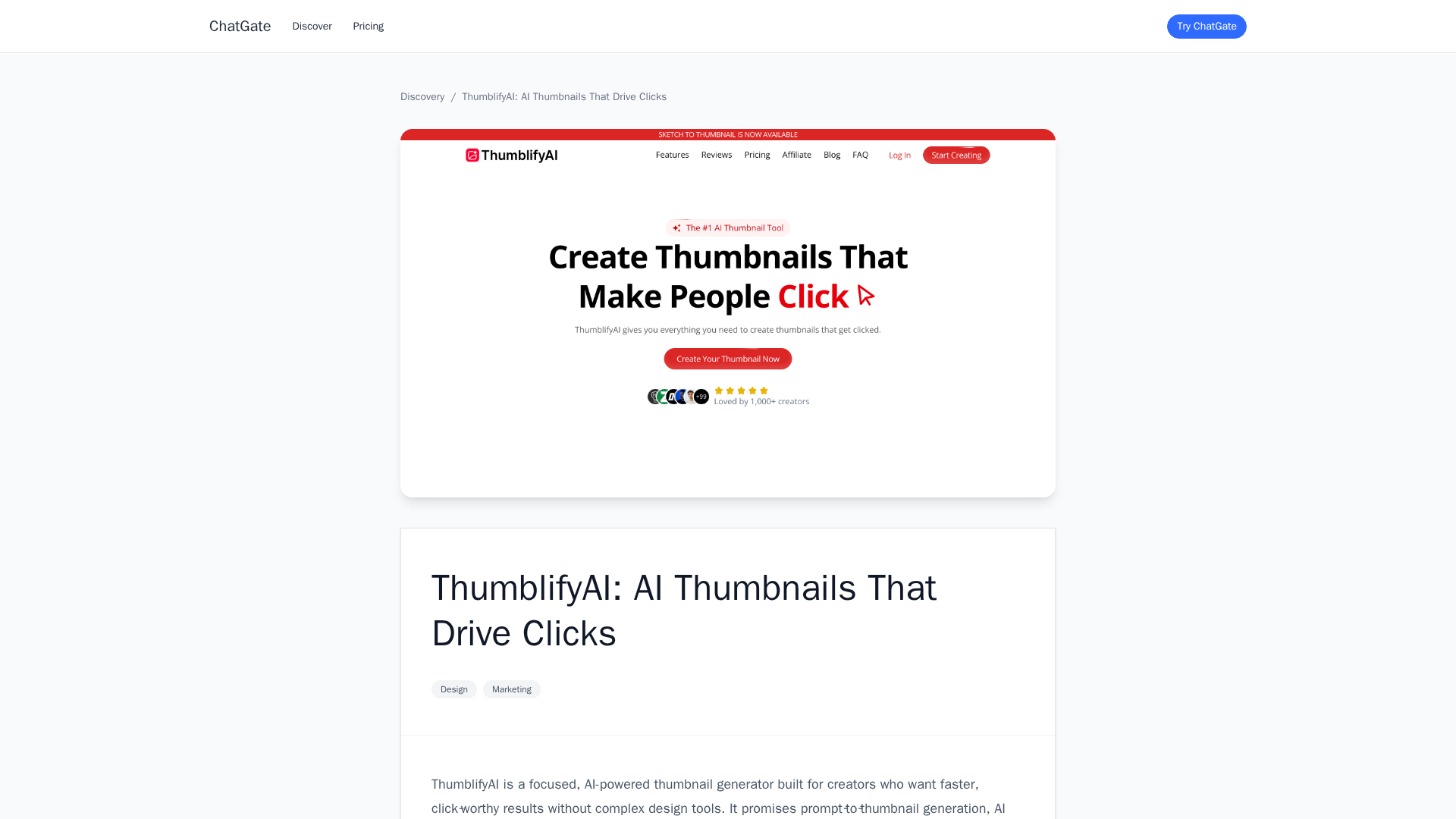 ThumblifyAI is a web-based AI thumbnail generator built for content creators and marketers who want to produce click-driving YouTube thumbnails quickly. The platform analyzes inputs (uploads, sketches, or reference thumbnails) and generates multiple design options, while offering targeted controls to preserve composition and brand identity. Key capabilities include automated thumbnail generation, style-matching to replicate a chosen visual identity, sketch-to-thumbnail transformation, and area-specific ‘Ultra Editing’ for precise, region-based edits. ThumblifyAI emphasizes speed and iterative workflows—allowing creators to sketch or upload a reference, supply a short prompt, and receive publish-ready thumbnails in seconds. The service uses a credits/pay-as-you-go model (site messaging: "Only pay for what you use. No monthly subscription") and offers an affiliate program that awards credits for referrals.