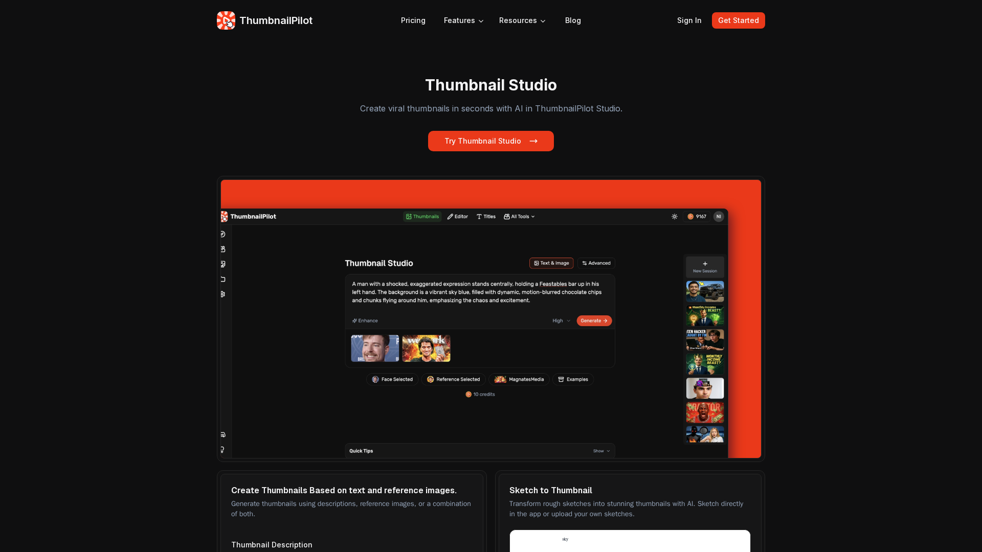 Generate thumbnails from textual prompts, reference images, or sketches.