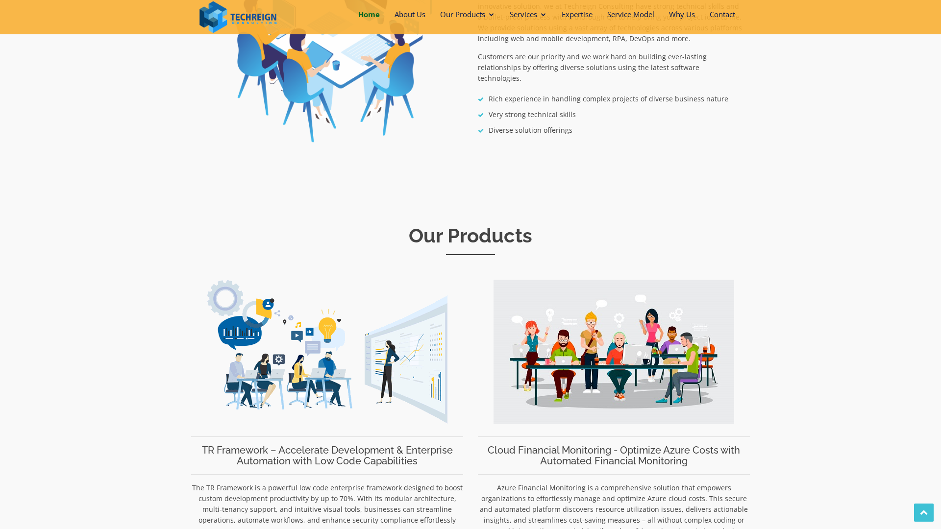 TechReign’s TR Framework is presented as a low-code, modular enterprise platform designed to accelerate application development by up to 70%. It emphasizes visual tooling, reusable modules, multi-tenancy, and built-in workflow and API integration capabilities to enable faster delivery of scalable business applications. The framework also includes role-based access control, dashboards, scheduling, and templates to simplify migration and collaboration across teams. A related offering — Cloud Financial Monitoring — focuses on Azure cost optimization by discovering resources, analyzing utilization patterns (including nightly and weekend use), and producing right-sizing and scaling recommendations that can be converted into no-code automation tasks for execution. The product is positioned within TechReign Consulting’s broader services (RPA, DevOps, custom software development), with a customer-centric, iterative approach and a call-to-action for demos and trials.