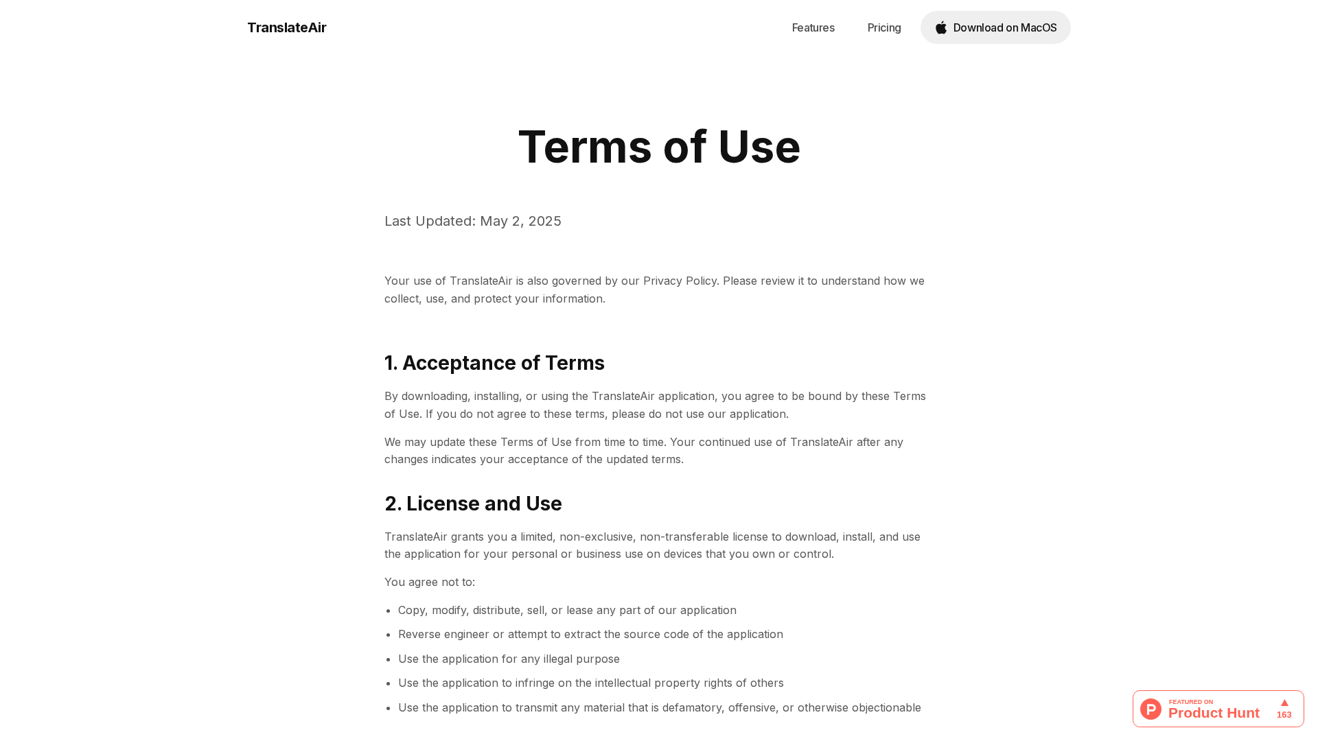 Overview of TranslateAir's Terms of Use: licensing, pricing, IP, liability, updates, and Turkish governing law.