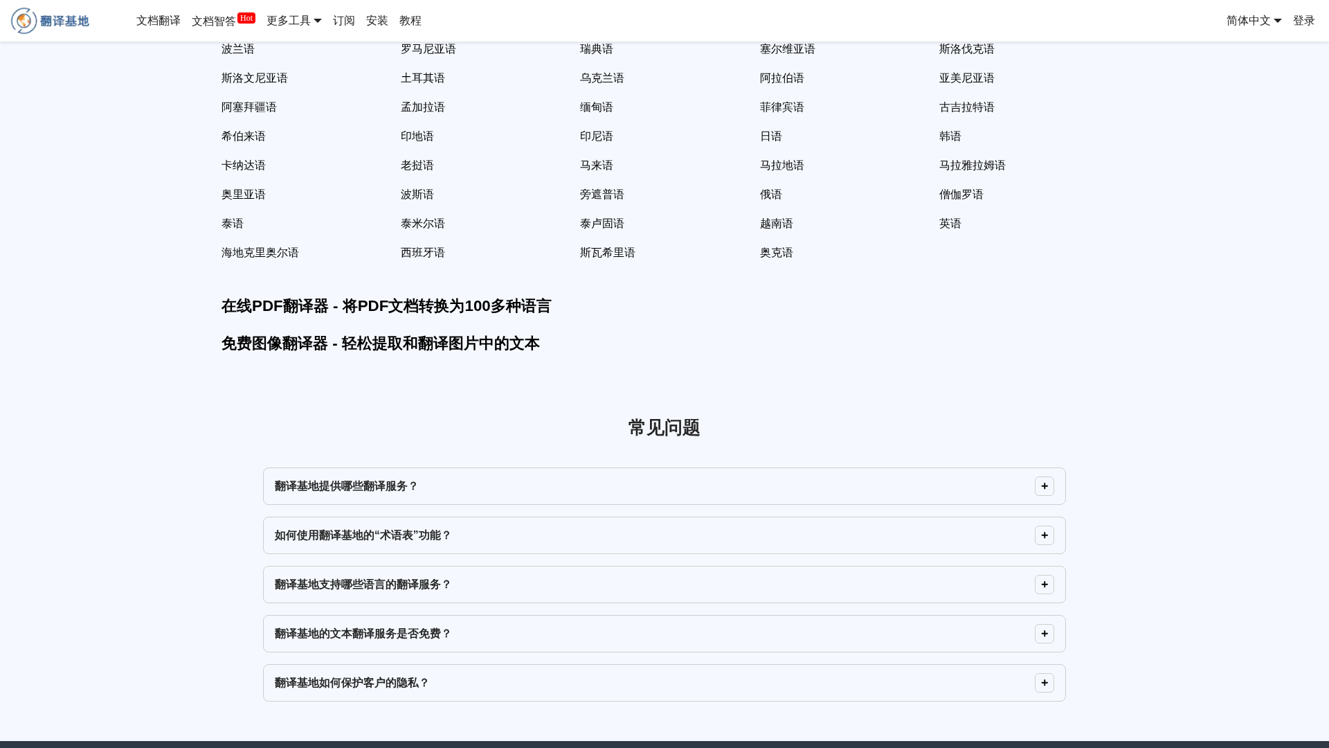 Offers OCR translation for scanned PDFs via a dedicated tool/page.