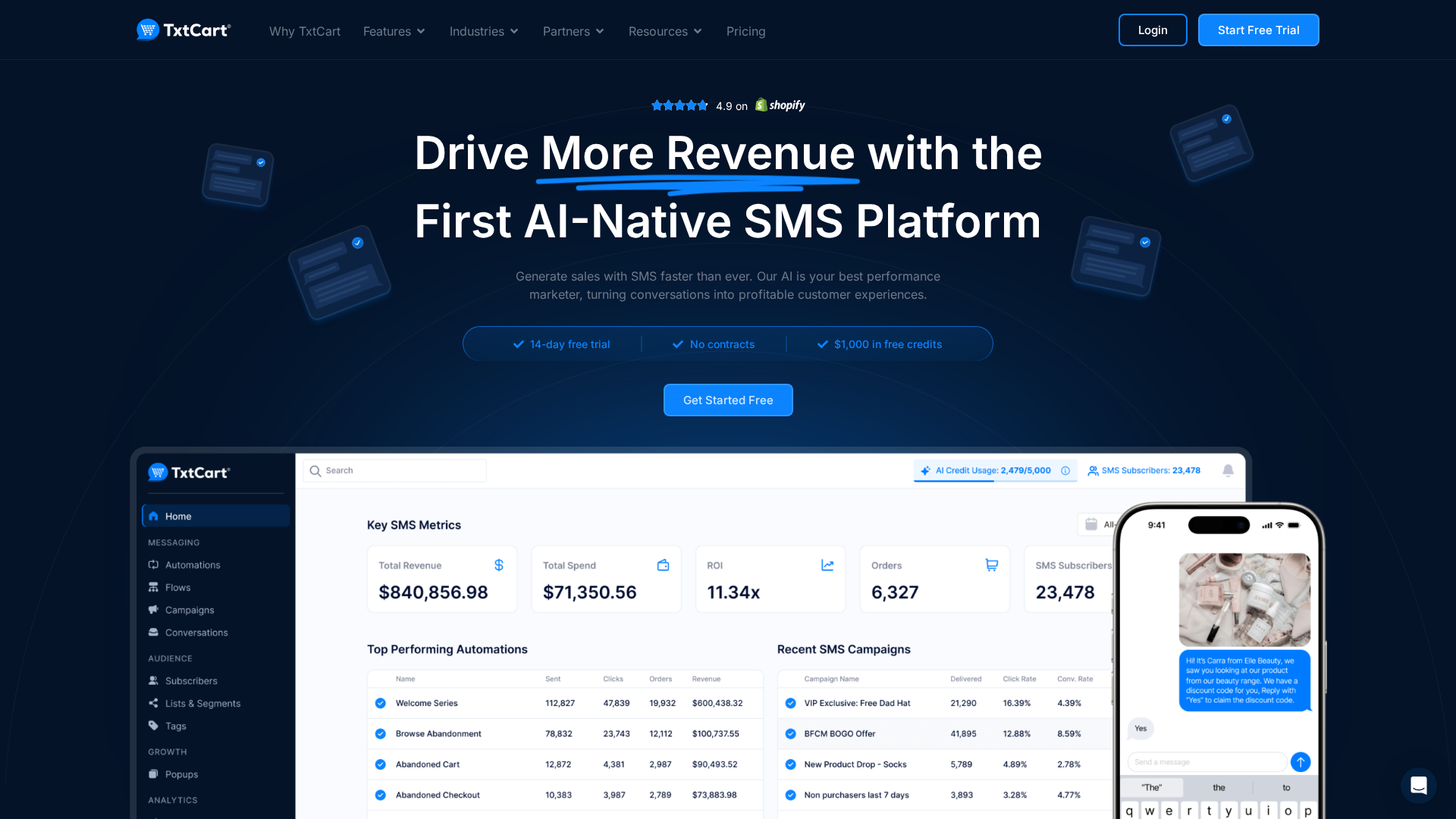 - Shopify Merchants:Run AI-powered conversational SMS campaigns to recover carts and increase repeat purchases.