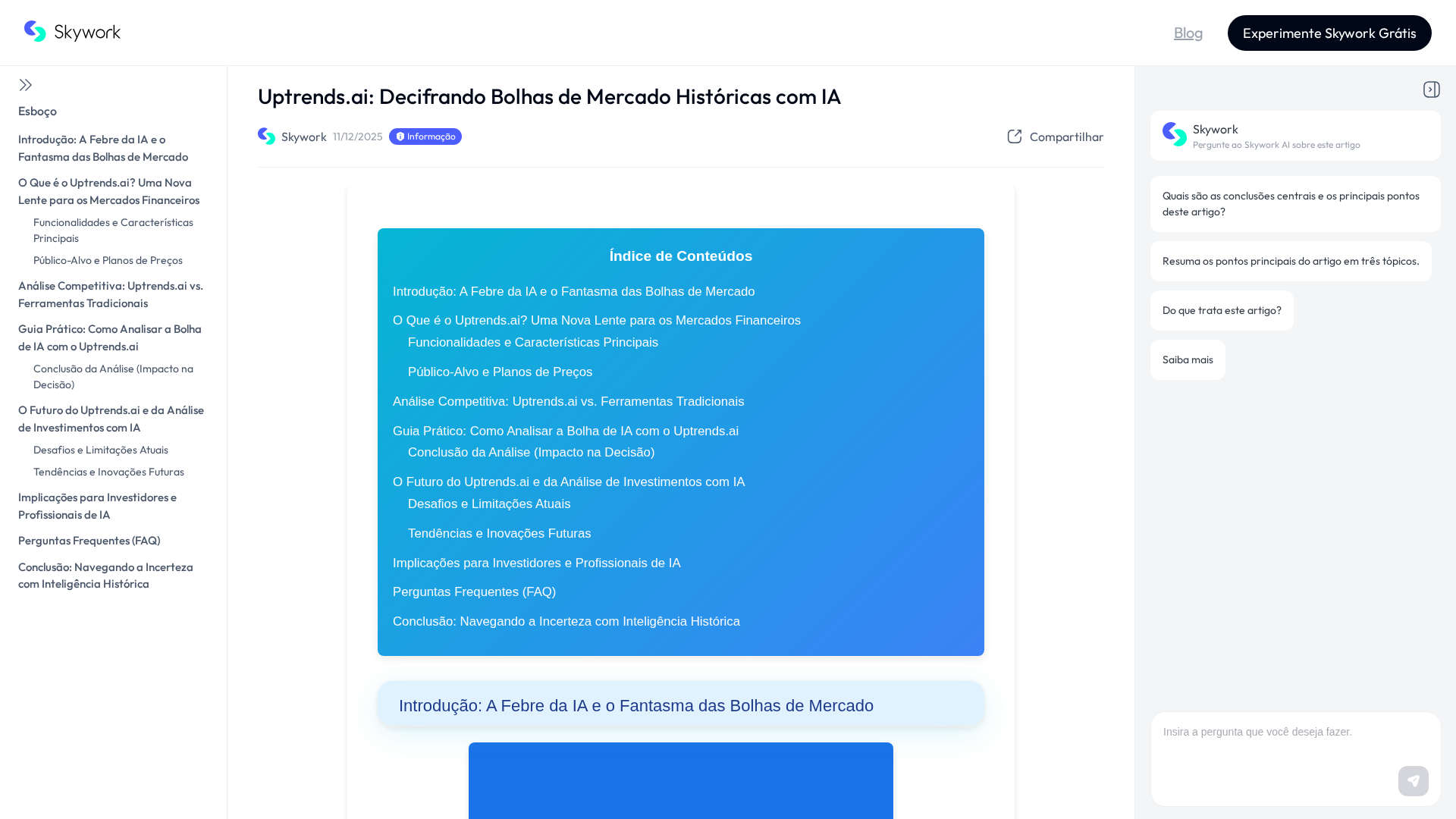 Análise do Uptrends.ai: ferramenta de IA que identifica bolhas históricas e compara o presente com o passado.