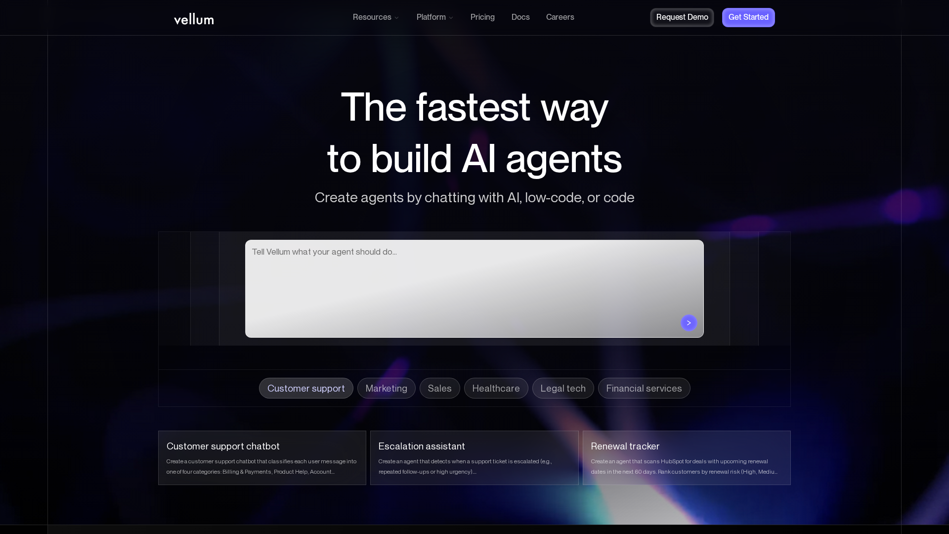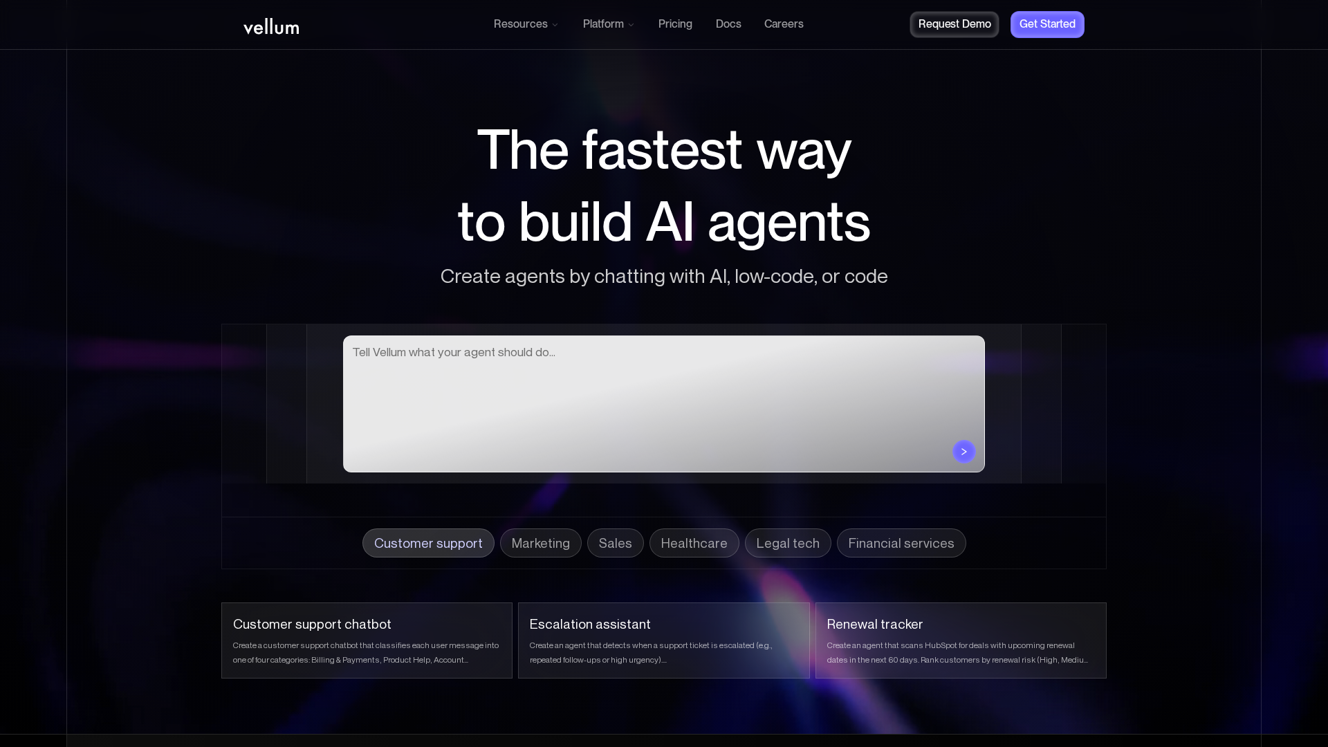 A rich gallery of plain-English prompts for building AI agents across support, sales, legal, and more with Vellum AI.