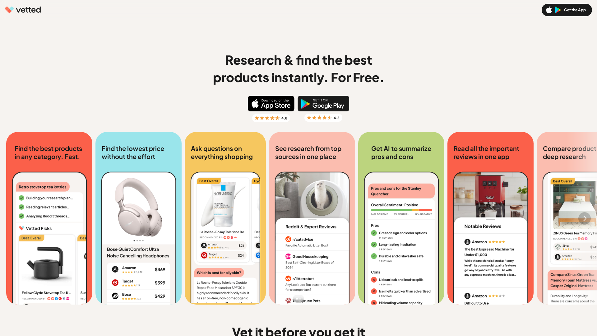 Meet Vetted, an AI shopping assistant that analyzes Reddit, YouTube, reviews, and expert articles to help you find the best products.