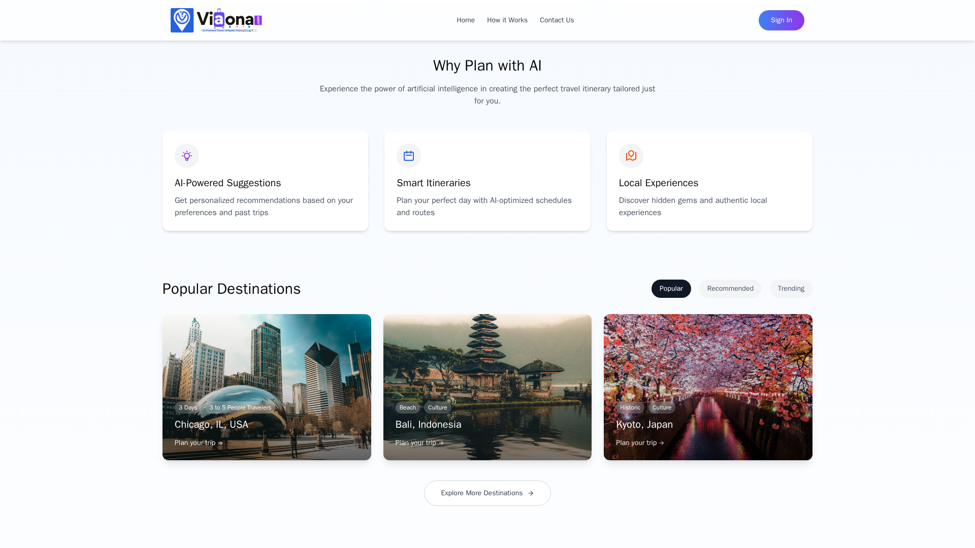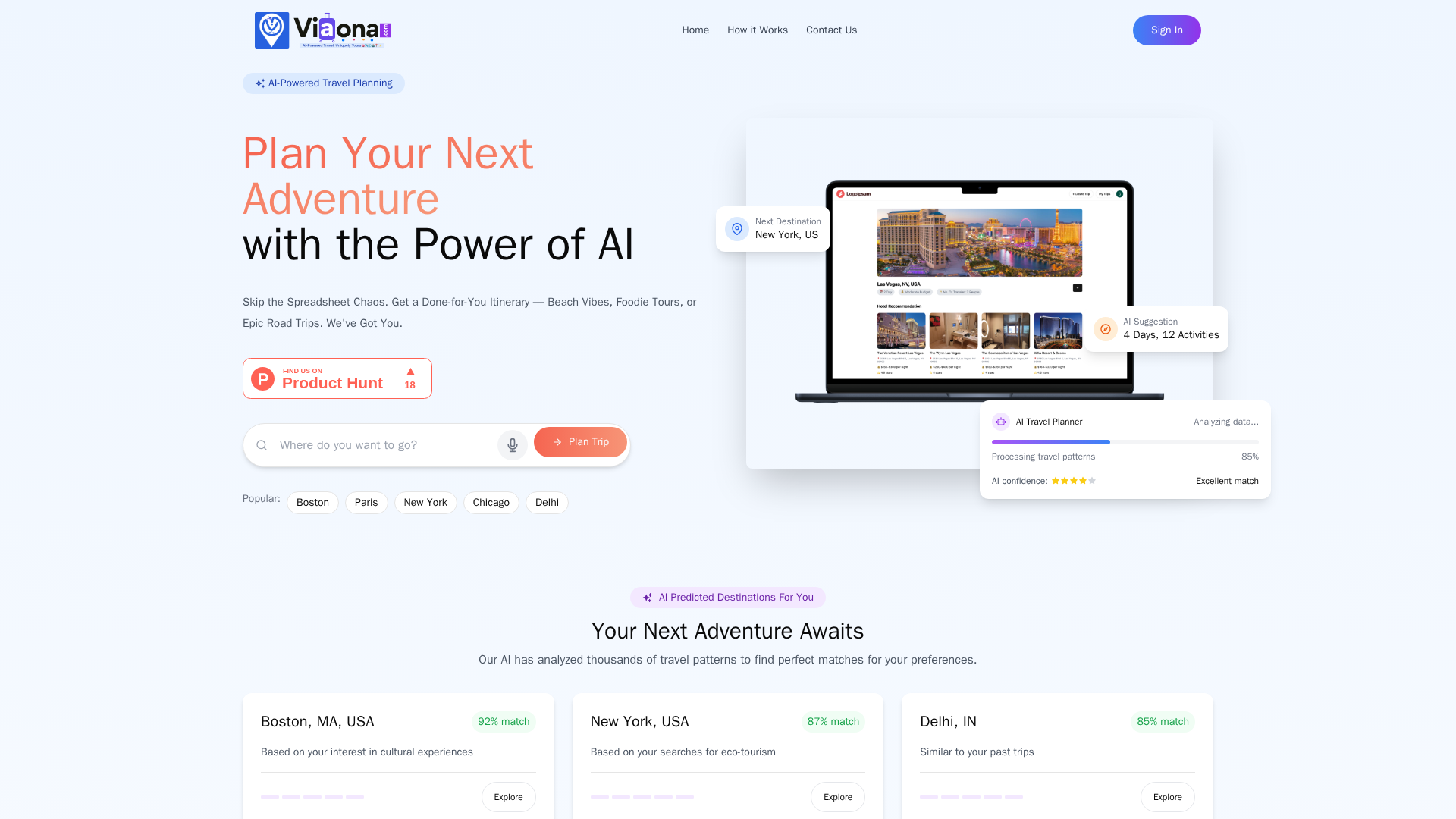 Viaona is an AI-powered travel planning assistant designed to help users build personalized itineraries. It generates day-by-day plans based on user preferences such as travel style, dates, budget, and pace, and integrates interactive maps, suggested routes, and booking links to streamline planning and collaboration. The platform emphasizes sharing/export options, offline use, and adaptive scheduling that can account for opening hours and transit. While live, fully-text content from some pages was not accessible during extraction, the available snippets describe onboarding, preference setting, itinerary generation, and collaboration features. Pricing details are not publicly visible on the pricing page, and exact author attributions are not provided. This summary reflects best-effort interpretation of the publicly available snippets and page titles.