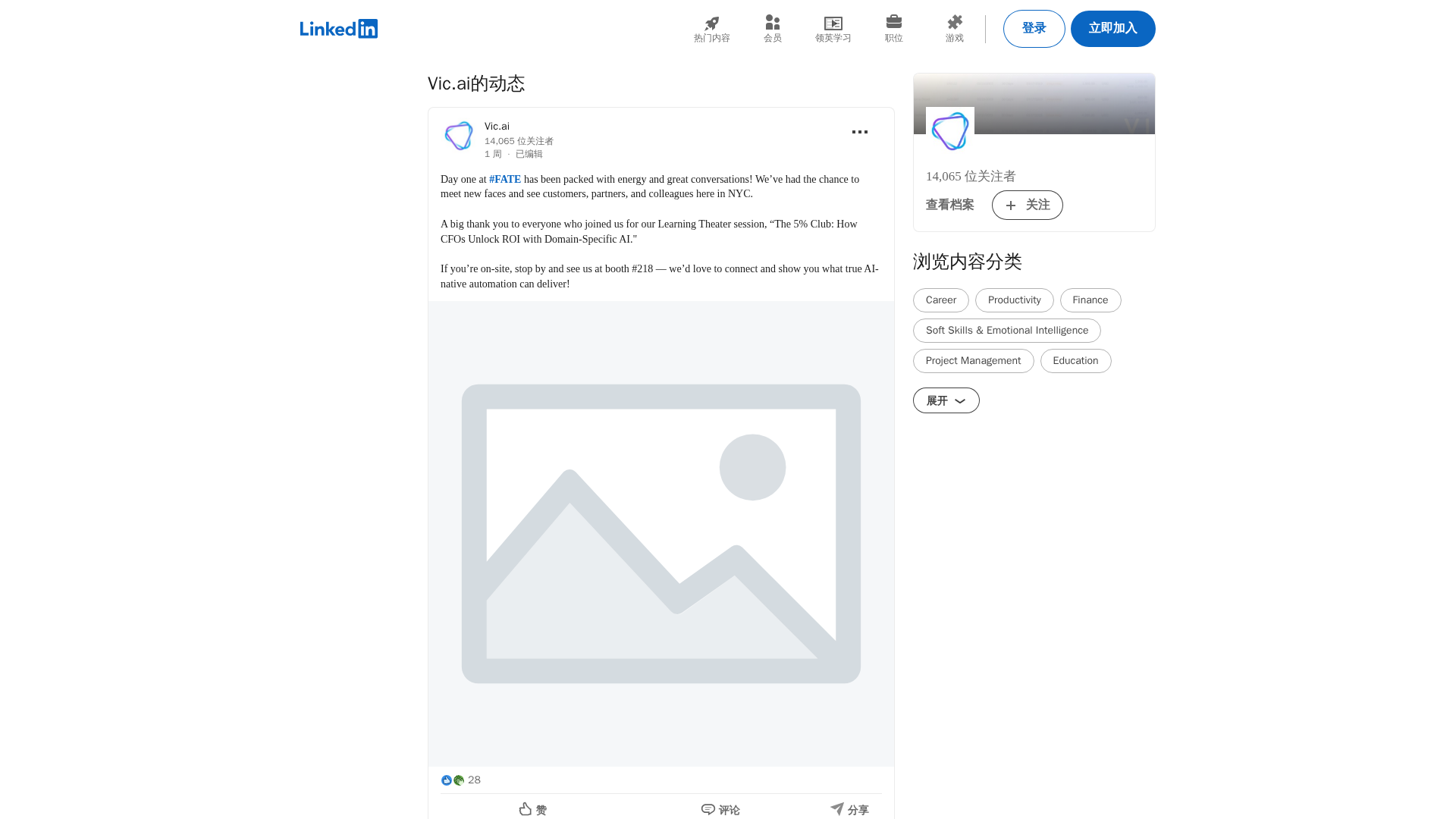 Vic.ai reports Day One at FATE NYC, highlighting a CFO ROI session and AI-native automation at booth 218.