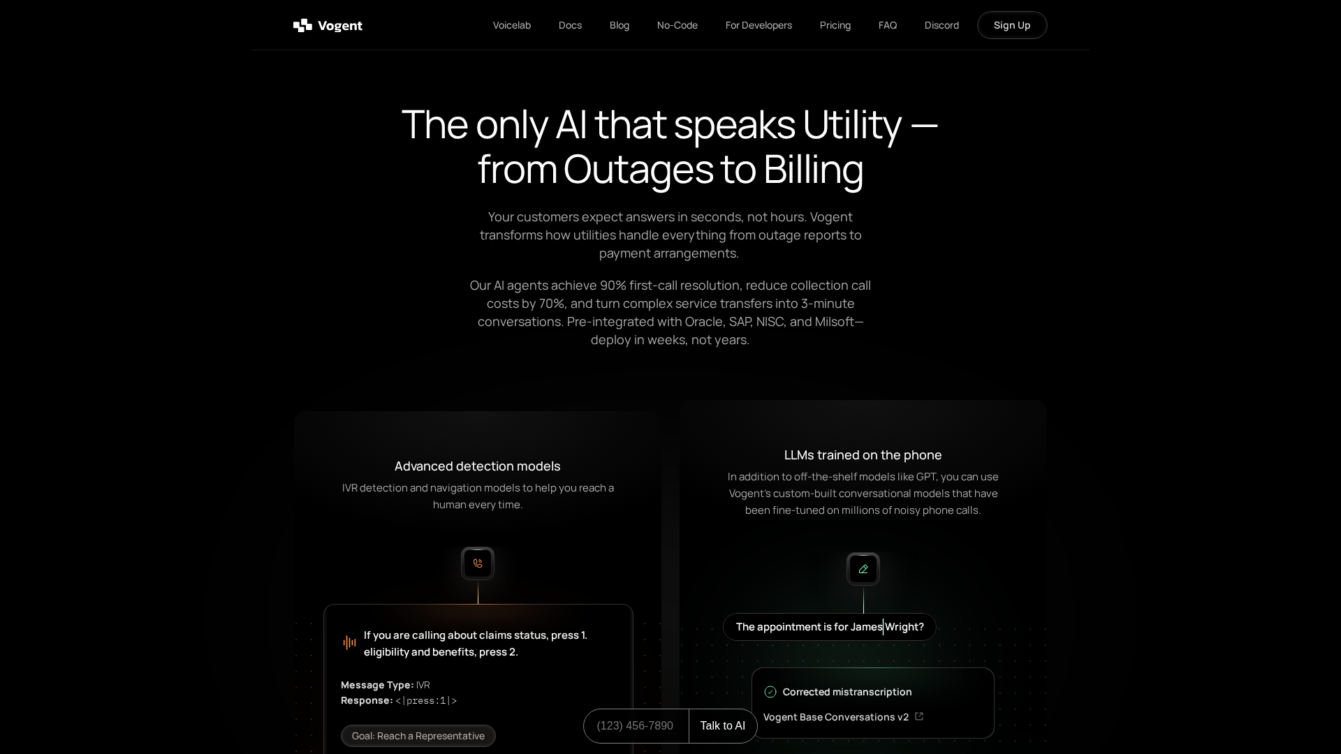 Vogent offers AI voice agents for utilities with fast deployment, strong performance, and developer-friendly tooling.